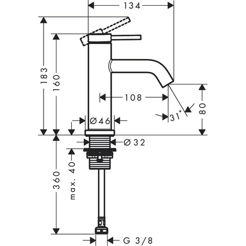 - Spout reach van 108 mm, ideaal voor verschillende wastafeltypen