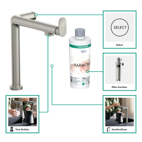 - Inclusief éénhendel keukenmengkraan en filterkop voor direct gefilterd water