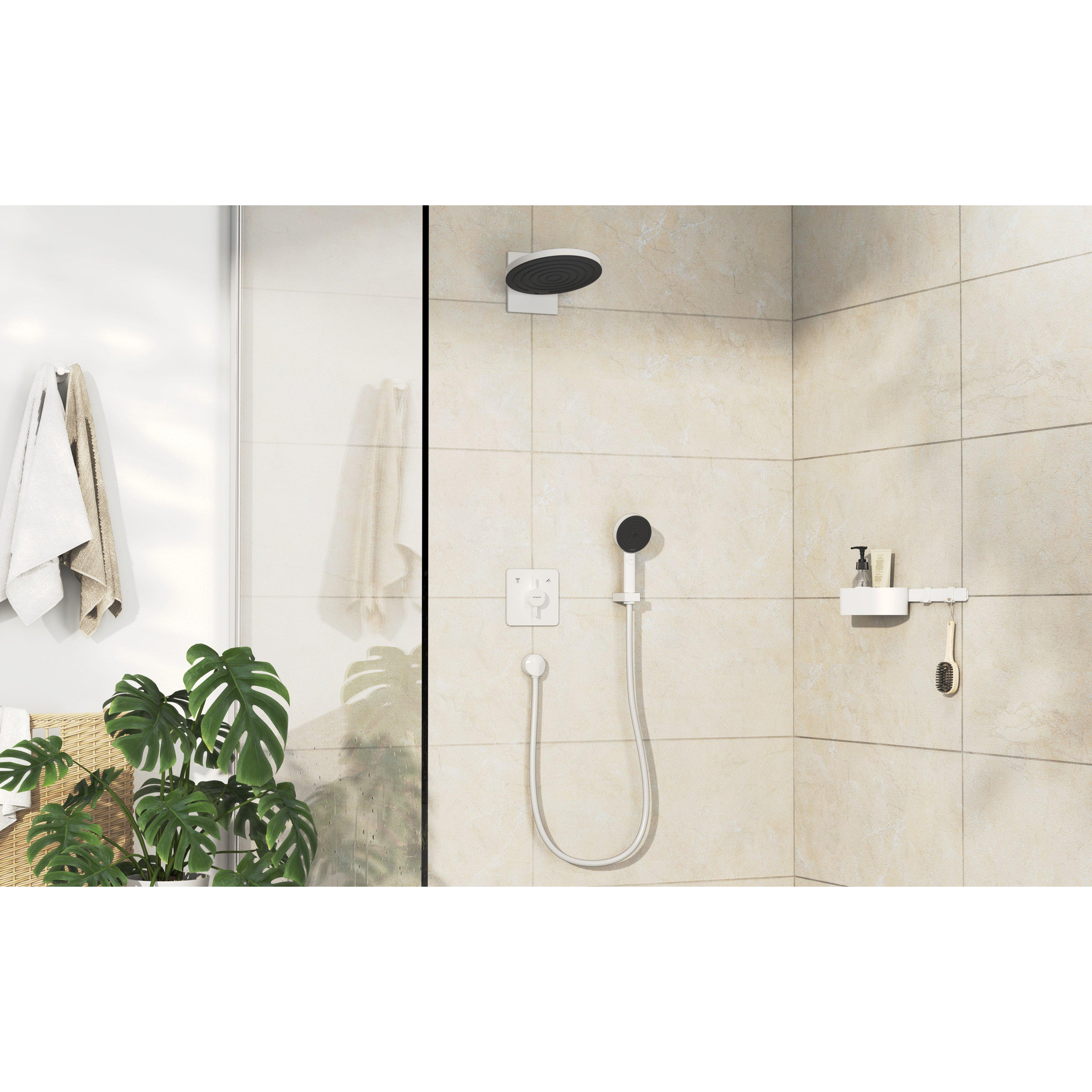 Het ontwerp van deze inbouwkraan is een toonbeeld van moderne elegantie. Met zijn ultraplatte vormgeving en heldere lijnen past hij perfect in elke badkamerstijl, van strak en minimalistisch tot warm en eigentijds. De mat witte afwerking geeft een zachte, luxe uitstraling die moeiteloos combineert met diverse kleuren en materialen. Door de duidelijke symbolen op de knoppen weet je altijd precies welke functie je kiest, wat bijdraagt aan een gebruiksvriendelijke ervaring. Dit stijlvolle design zorgt ervoor dat je badkamer er niet alleen prachtig uitziet, maar ook praktisch en overzichtelijk blijft.