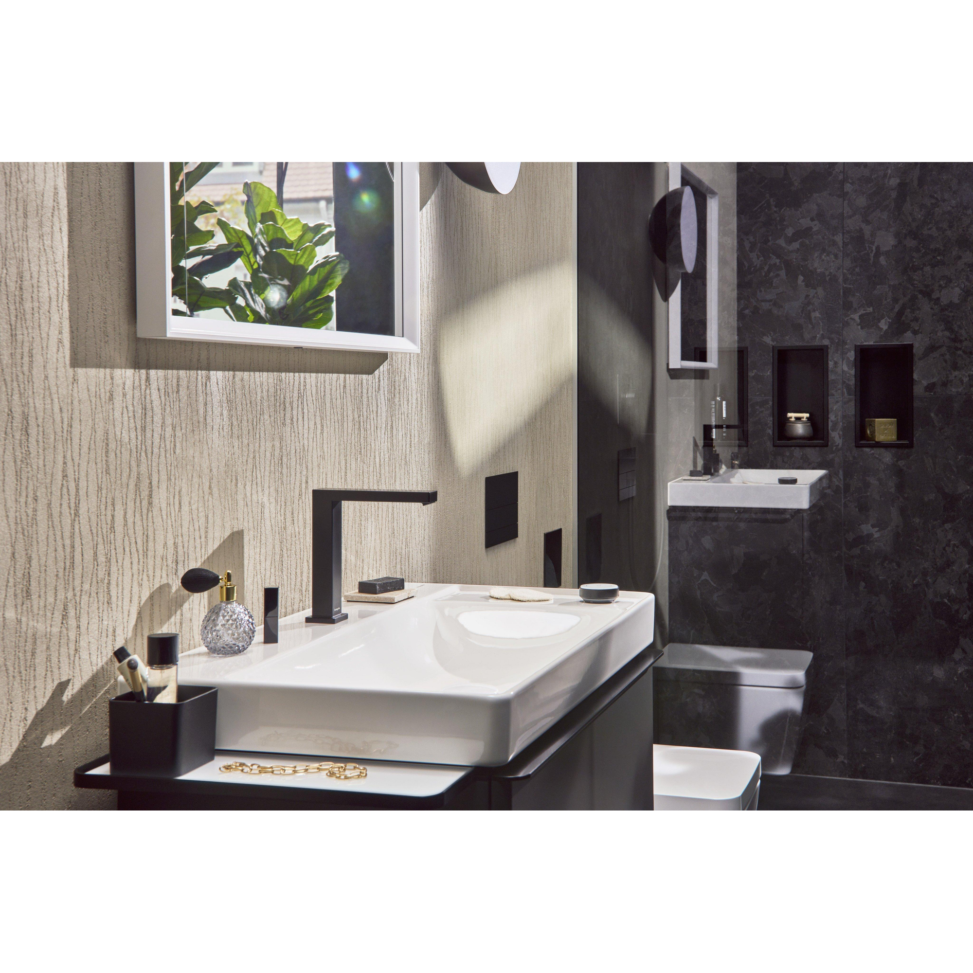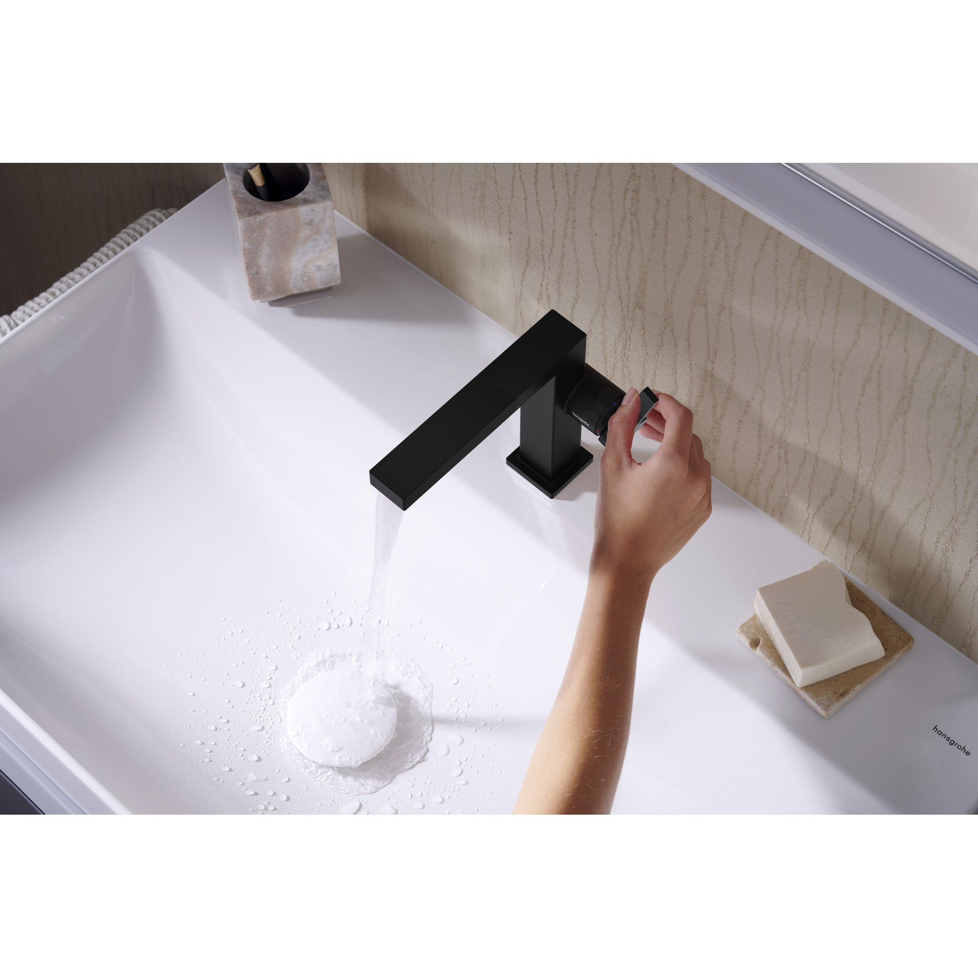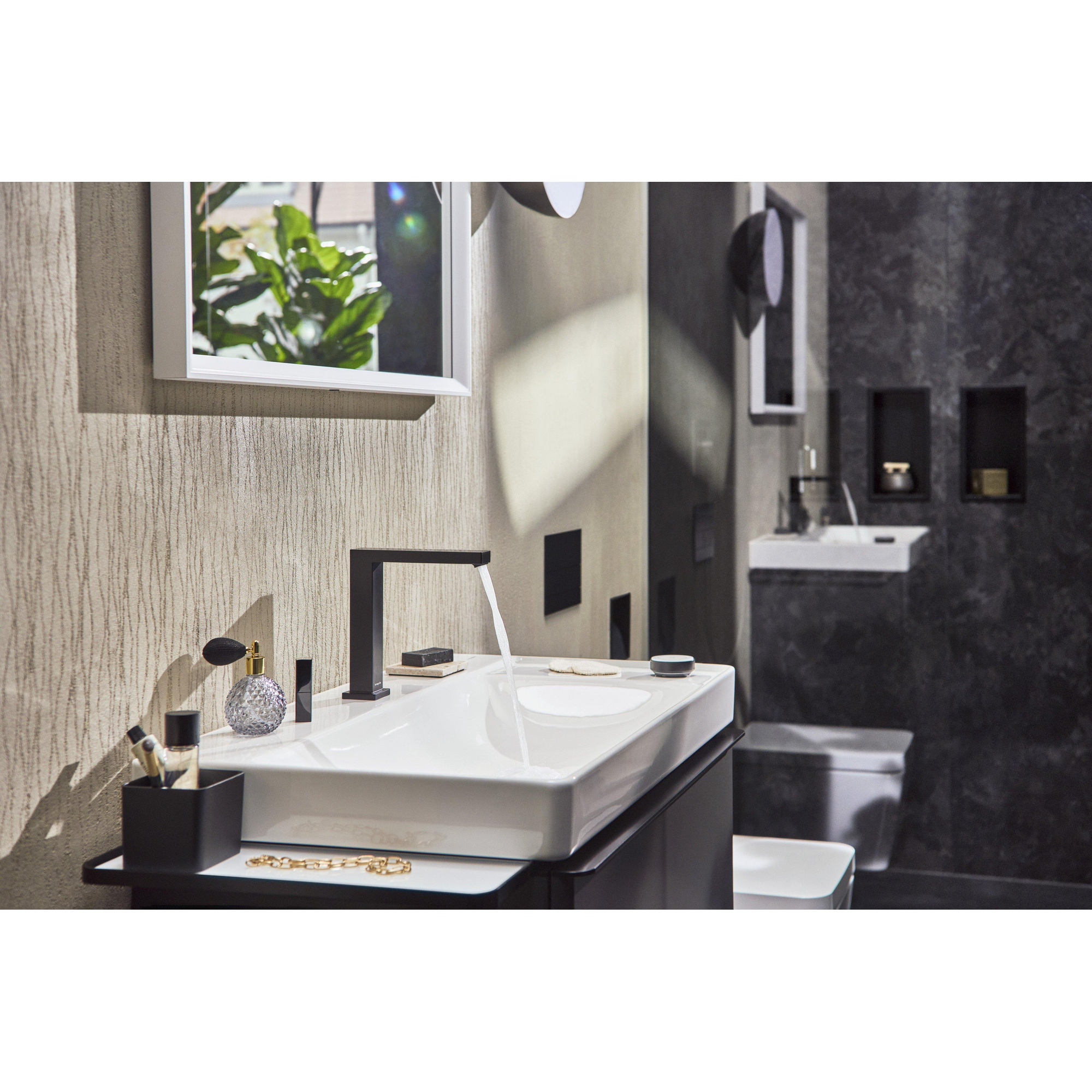Het minimalistische design met geometrische vormen en een matte zwarte finish maakt deze kraan tot een echte eyecatcher. De strakke lijnen passen perfect in moderne badkamers en zorgen voor een tijdloze uitstraling die niet snel verveelt. Dankzij de matzwarte kleur combineer je hem moeiteloos met diverse badkamerstijlen en accessoires. Zo geef je jouw wastafel een luxe en eigentijdse look die direct de aandacht trekt. Met deze kraan voeg je een subtiel maar krachtig designelement toe, waarmee je jouw badkamer een persoonlijke en stijlvolle touch geeft.
