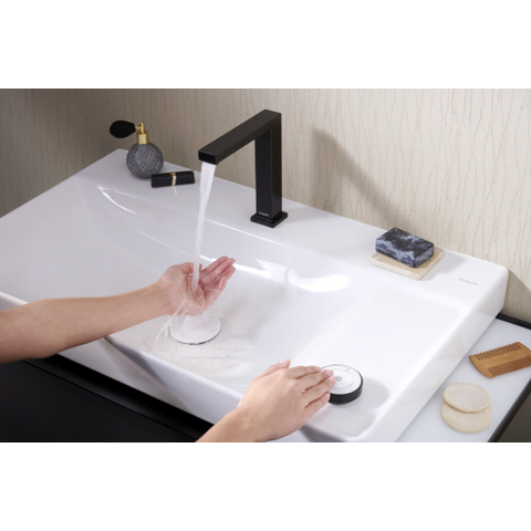 Stel je voor: een wastafelmengkraan die niet alleen functioneel is, maar ook een echte blikvanger in je badkamer. Met zijn strakke lijnen en matte zwarte afwerking geeft deze kraan je wastafel een moderne, stijlvolle uitstraling die direct opvalt. Het gebruiksgemak staat voorop dankzij de innovatieve bediening, waarbij je met een simpele druk op de knop de waterstroom en temperatuur moeiteloos regelt. De royale ruimte tussen uitloop en wastafel zorgt voor extra comfort, zodat je handen vrij kunnen bewegen zonder te knoeien. Bovendien draagt deze kraan bij aan een duurzame levensstijl door water en energie te besparen, zonder dat je inlevert op gebruiksgemak. Zo wordt elke keer water tappen een prettige ervaring die jouw badkamer naar een hoger niveau tilt.