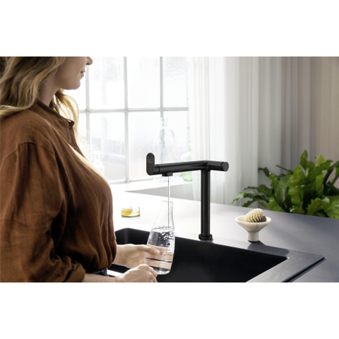 De matte zwarte finish van dit systeem zorgt voor een tijdloze en elegante uitstraling in je keuken. Het minimalistische design met een L-vormige uitloop en een ComfortZone van 240 mm geeft je volop bewegingsvrijheid en een luxe gevoel. Deze kleur en vormgeving passen perfect bij moderne keukens en voegen een subtiele, maar krachtige touch toe aan je interieur. Door te kiezen voor dit stijlvolle product, investeer je in een keuken die niet alleen functioneel is, maar ook indruk maakt op iedereen die binnenkomt.