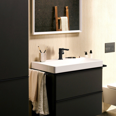 Transformeer jouw badkamer met een kraan die niet alleen functioneel is, maar ook een echte blikvanger. Deze wastafelmengkraan in mat zwart voegt een strakke, moderne touch toe aan je wastafelomgeving. Het minimalistische design met heldere lijnen en geometrische vormen zorgt voor een tijdloze uitstraling die moeiteloos past in diverse badkamerstijlen. Dankzij de slimme technologieën geniet je elke dag van een comfortabele en duurzame waterbeleving. De kraan voelt prettig aan, werkt zuinig en is eenvoudig te bedienen, waardoor het gebruiksgemak en de esthetiek hand in hand gaan. Zo maak je van je dagelijkse routine een moment van puur genot.