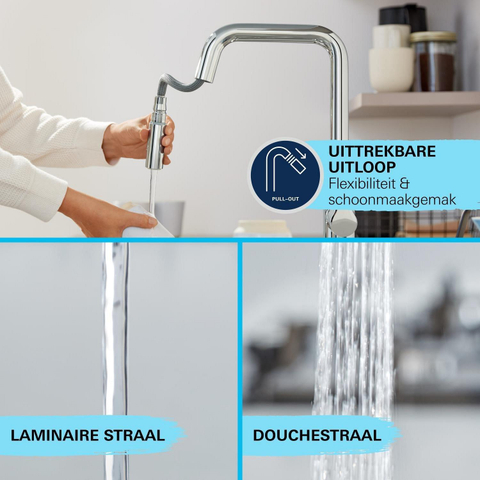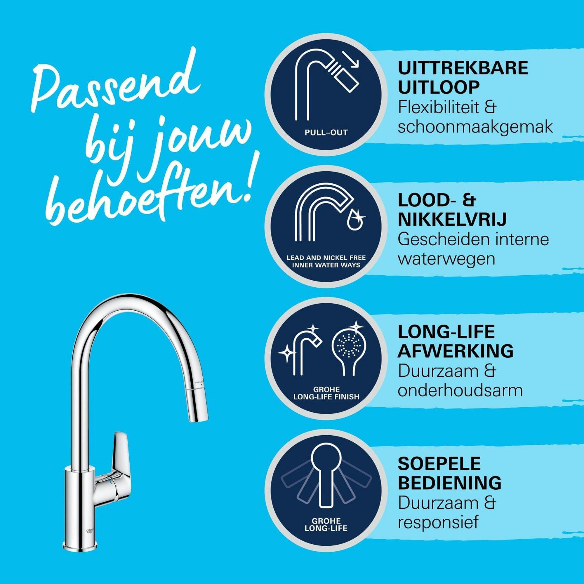 Grohe Start Edge Keukenkraan - 1-gats - hoge draaibare uittrekbare uitloop - voorsprong 21.5cm - gesloten greep - chroom