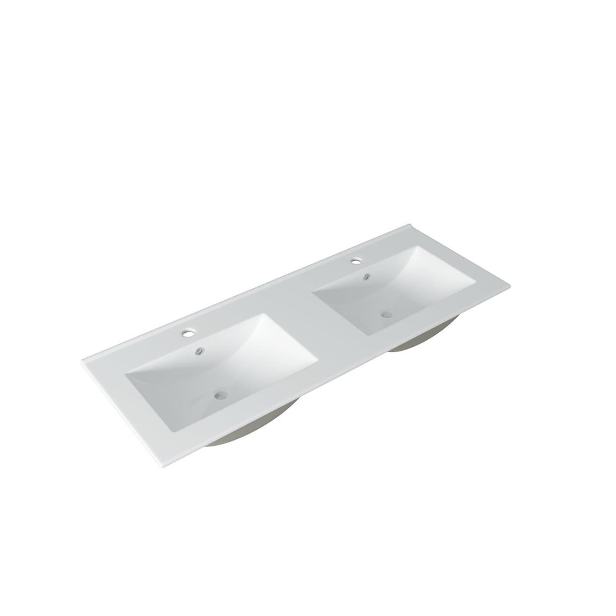 Saniclass Prime Essential Badkamermeubelset - 120x55x46cm - 2 rechthoekige wasbakken wit - 2 kraangaten - 4 lades - rechthoekige spiegel - licht eiken
