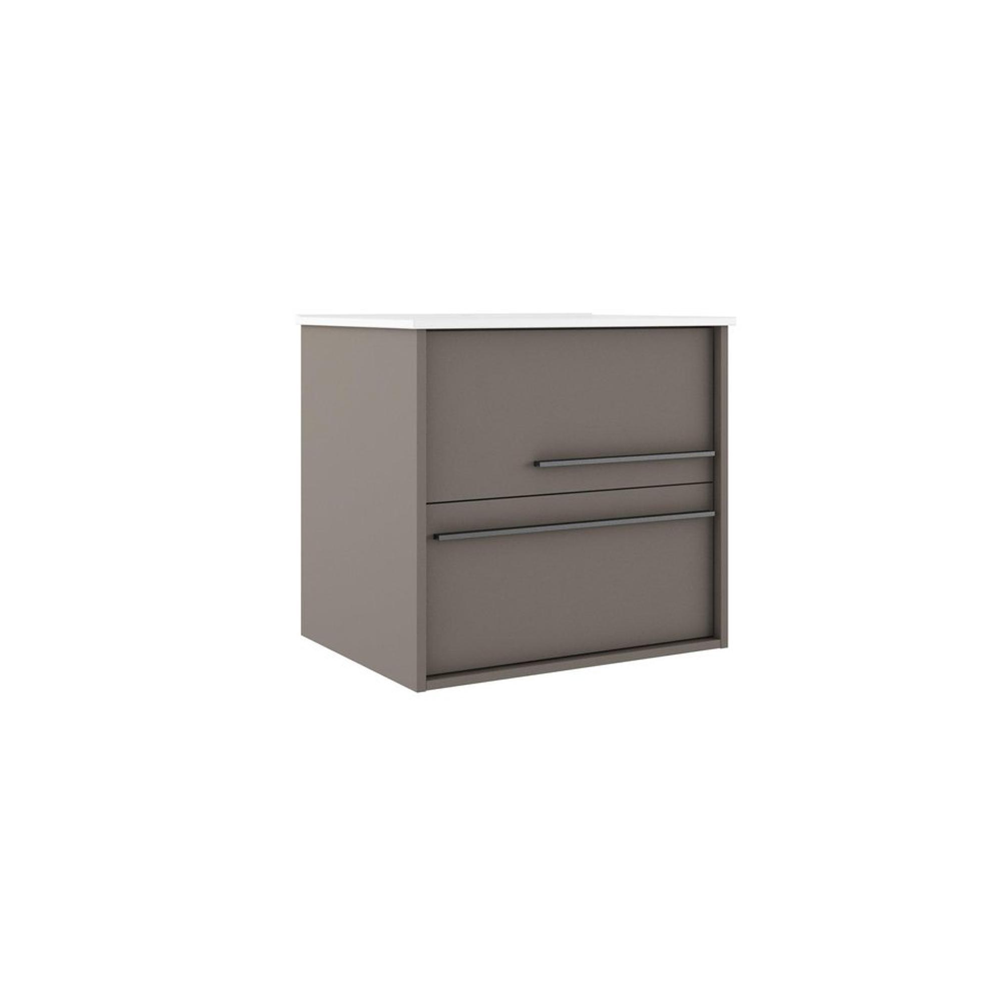 Het ontwerp van deze set ademt moderne elegantie. Strakke lijnen en een minimalistische vormgeving zorgen voor een frisse, eigentijdse uitstraling. De witte rechthoekige wasbakken contrasteren prachtig met het matte taupe van het meubel, wat een subtiele maar stijlvolle twist geeft. Dankzij de twee kraangaten kun je kiezen voor kranen die passen bij jouw stijl en gebruiksgemak. Deze combinatie van vorm en functie maakt het meubel tot een blikvanger die je badkamer een eigentijdse upgrade geeft.