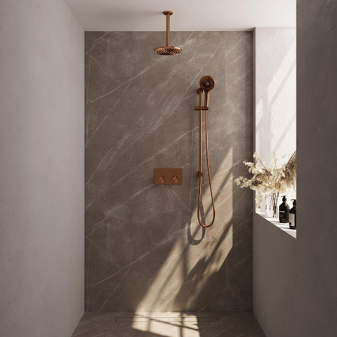 BRAUER Copper Edition Thermostatische Regendouche inbouw - drukknoppen - SET 71 - 20cm hoofddouche - plafondarm - 3 standen handdouche - doucheslang - geïntegreerde glijstang - koper geborsteld PVD
