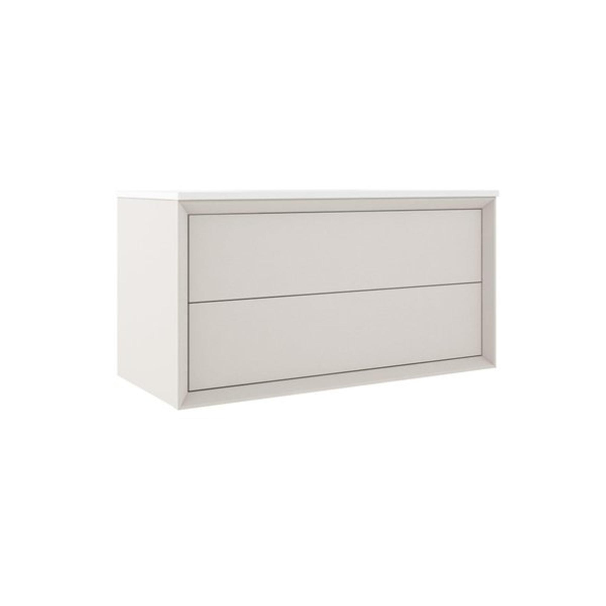 Saniclass Prime Core Badkamermeubelset - 100x50x45cm - 1 rechthoekige keramische wasbak wit - 1 kraangat - 2 lades - rechthoekige spiegel - mat cotton (beige)
