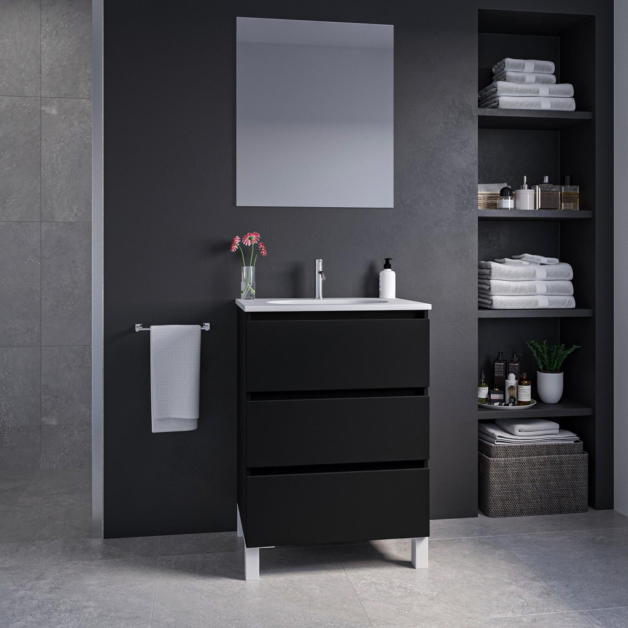 Saniclass Chaci PLUS Badkamermeubelset - 60x86x46cm - keramische wastafel wit - 1 ovale wasbak - 1 kraangat - 3 lades - rechthoekige spiegel - mat zwart