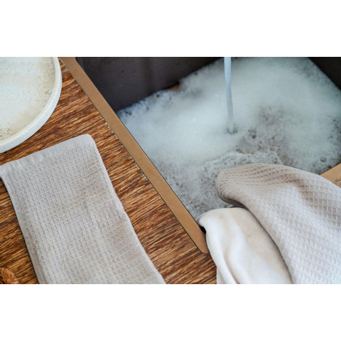 De zachte beige kleur en het karakteristieke wafelpatroon geven deze doeken een verfijnde, bijna spa-achtige uitstraling. Dat maakt ze bijzonder geschikt als je in je keuken of badkamer een rustige, natuurlijke sfeer wilt neerzetten. De structuur oogt decoratief wanneer je de doek over een kraan, handdoekhaakje of wasbakrand hangt, maar is tegelijkertijd heel praktisch in gebruik. Door de compacte afmeting ogen ze nooit rommelig en zijn ze makkelijk te combineren met andere accessoires in neutrale tinten, zoals houten details, zwarte kranen of witte wastafels. Zo voeg je met een klein detail toch een voelbaar stukje sfeer en afwerking toe aan je interieur.
