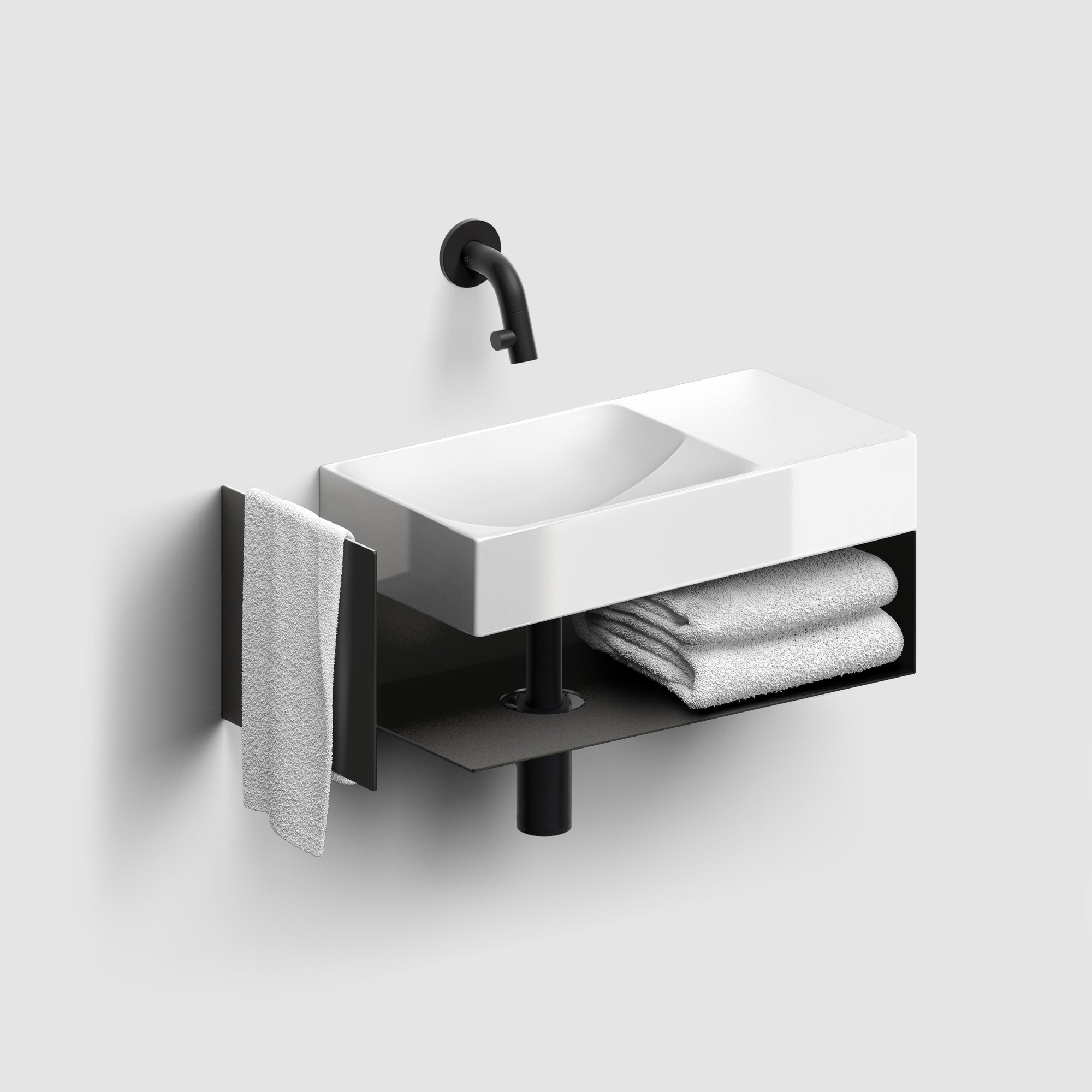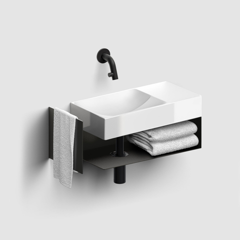 Clou Vale Open Kast - 46x19x18.5cm - rechts - met handdoekhouder - zwart