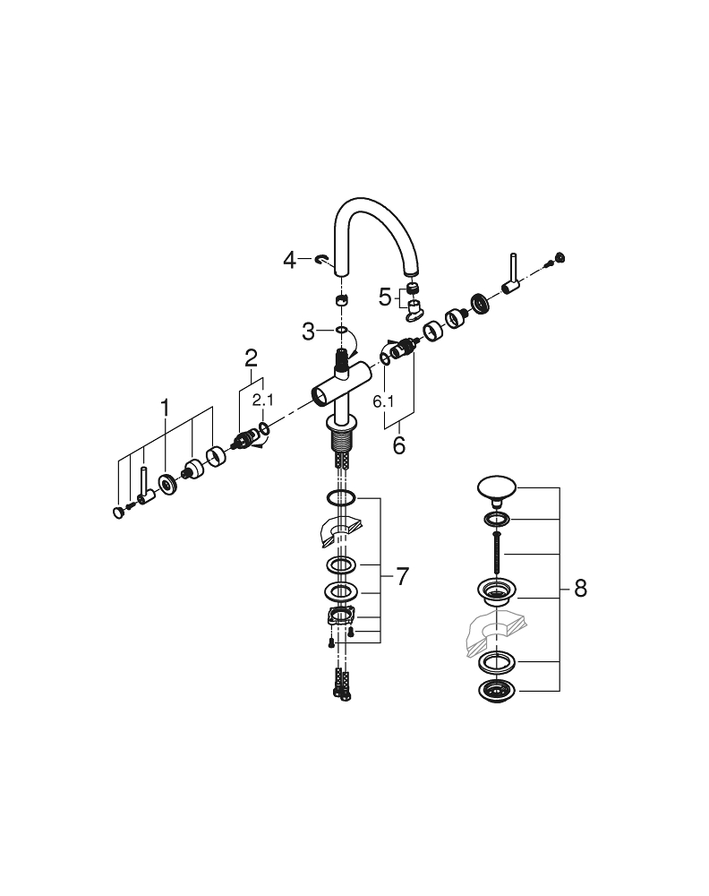 • Push-open waste 1 1/4" voor eenvoudig legen van de wastafel