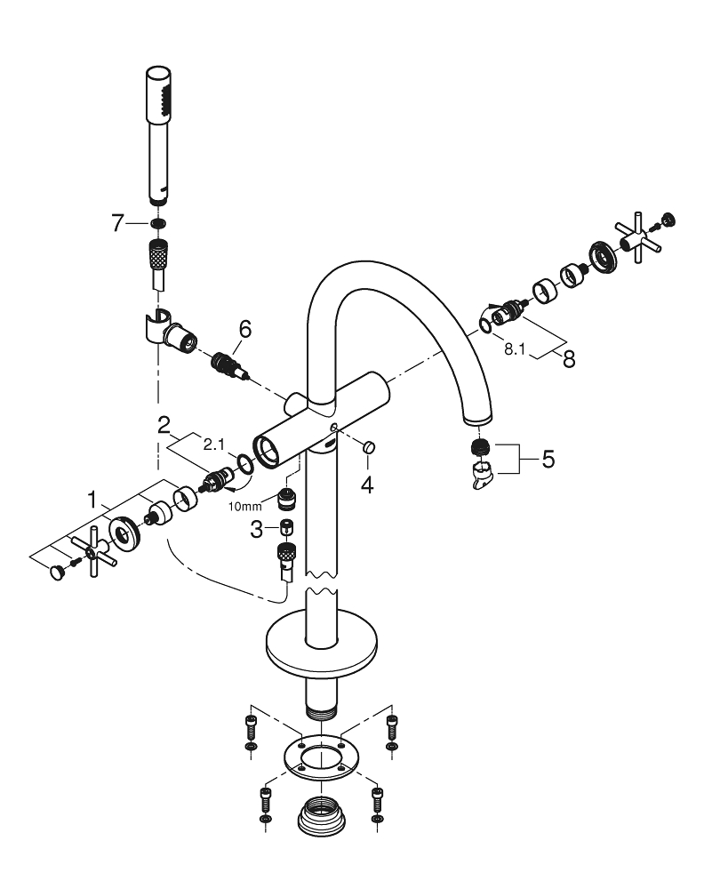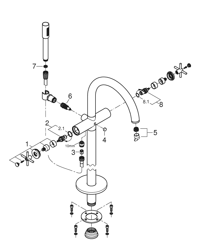 - Geschikt voor gebruik met keramische bovendelen (model 45 984 001) met 90° draai
