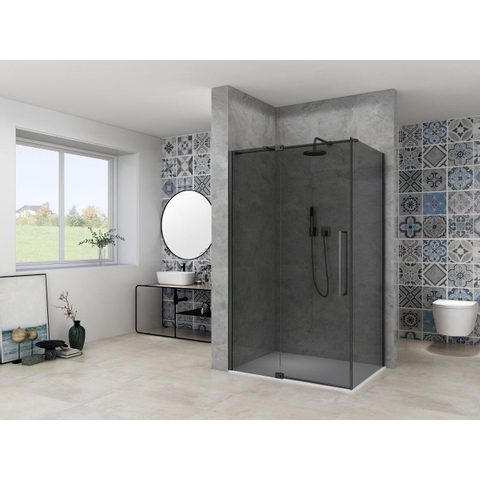 Van Rijn Products ST08 Vaste wand - 90x200cm - grijs rookglas - dikte 8mm - muurprofiel - Zwart