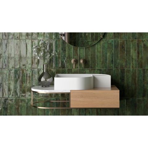 De glans groene afwerking van deze tegel maakt hem niet alleen visueel aantrekkelijk, maar ook praktisch in onderhoud. Dankzij de gladde oppervlakte is de tegel eenvoudig schoon te maken en te onderhouden. Met minimale inspanning behoudt deze tegel zijn prachtige uitstraling, waardoor je langdurig kunt genieten van een stralende en frisse ruimte.