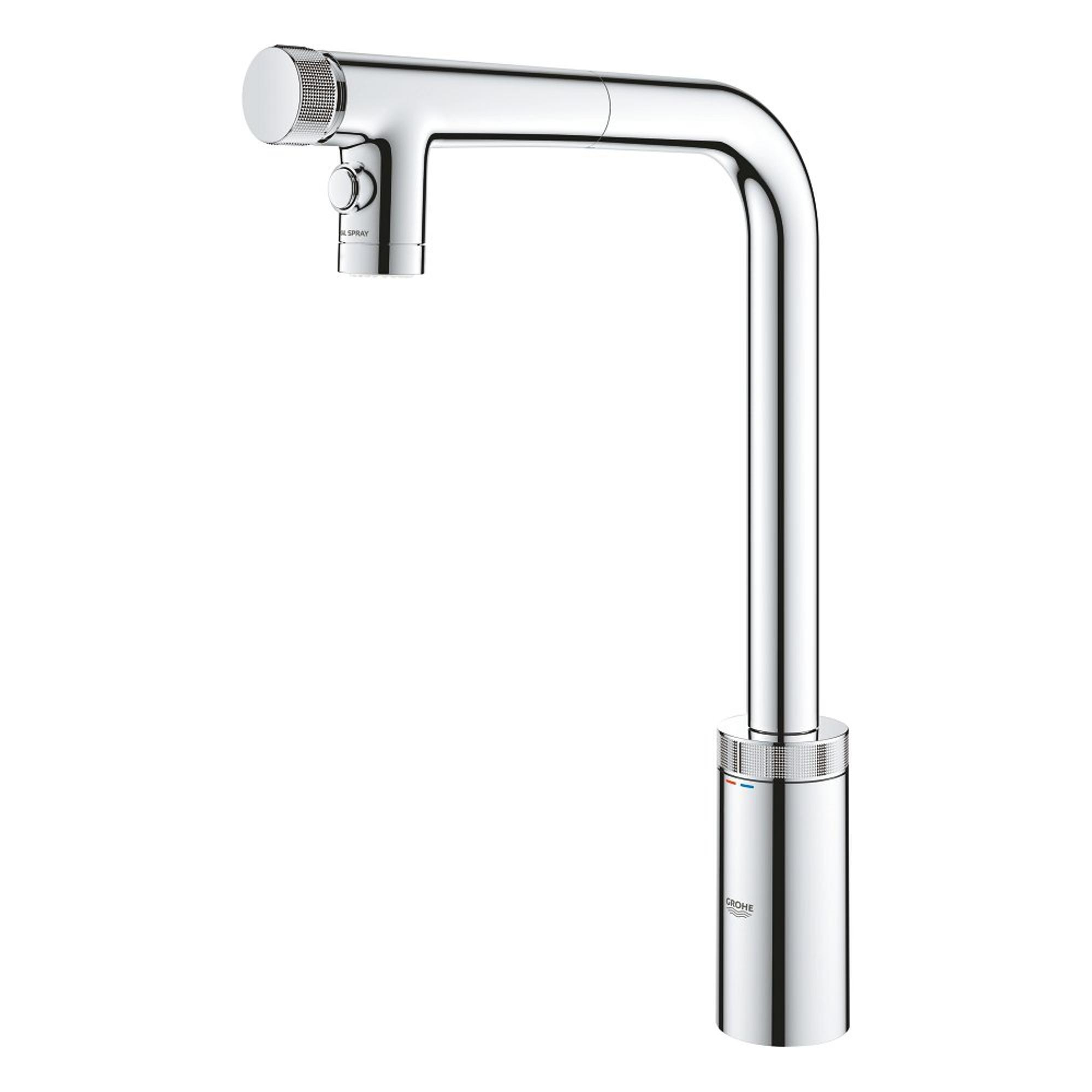 Grohe Minta smartcontrol keukenkraan L-uitloop uittrekbare dual spray chroom