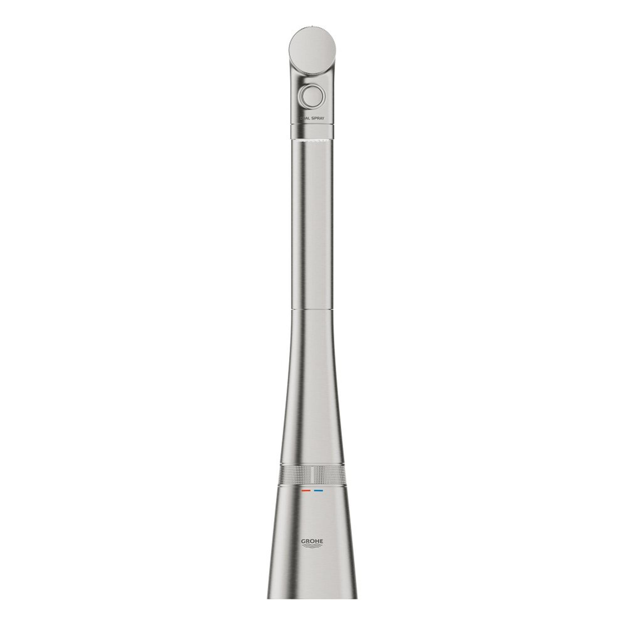 Met de innovatieve SmartControl technologie bedien je het water met een simpele druk en draai je het volume nauwkeurig bij. Dit maakt het gebruik bijzonder intuïtief, zelfs met vuile handen of wanneer je iets vasthoudt. De uittrekbare mousseur met twee straalsoorten – een zachte laminaire straal en een krachtige douchestraal – biedt veelzijdigheid voor al je keukentaken. Dankzij het GROHE Magnetic Docking-systeem klikt de sproeikop soepel en stevig terug op zijn plek. Dit alles zorgt voor een kraan die jouw keukenwerkzaamheden moeiteloos ondersteunt en vereenvoudigt.