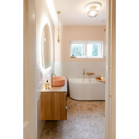 Het ZEZA Blend hoekbad in mat wit acryl straalt een tijdloze elegantie uit die perfect past bij elke moderne badkamerinrichting. De strakke afwerking en de hoekige vorm geven een eigentijdse uitstraling aan dit bad, waardoor het een blikvanger wordt in je badkamer. Geniet van een stijlvolle badervaring elke keer dat je in dit bad stapt.