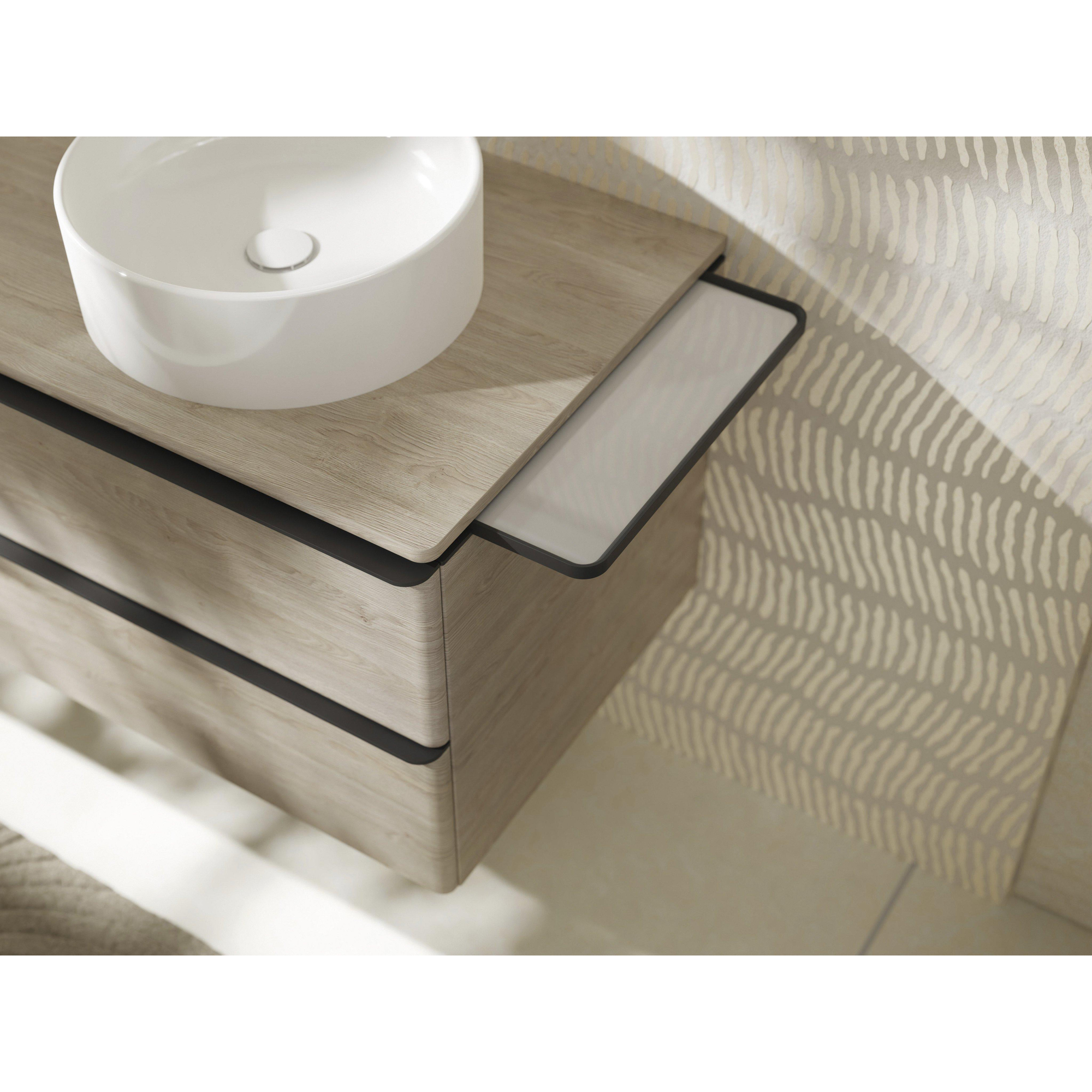 Volledig naar jouw voorkeur De waskom wordt geleverd zonder kraangat en zonder overloop. Dat betekent dat je zelf kunt bepalen waar en hoe je de kraan plaatst, zodat je jouw badkamer precies kunt inrichten zoals jij dat wilt.