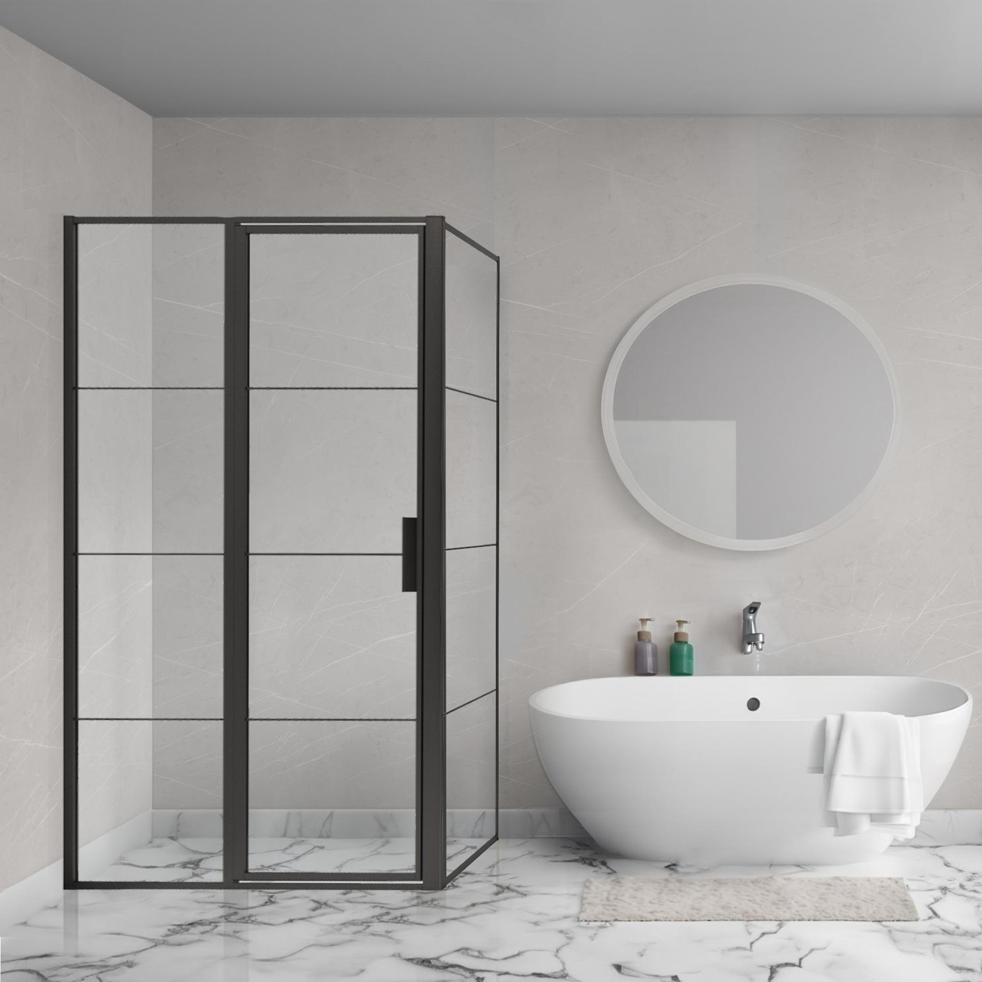 Aqua Vista Triple Draaideur met vast deel - 130x200 cm - 8mm - helder glas - onderdeel hoekcabine - mat zwart