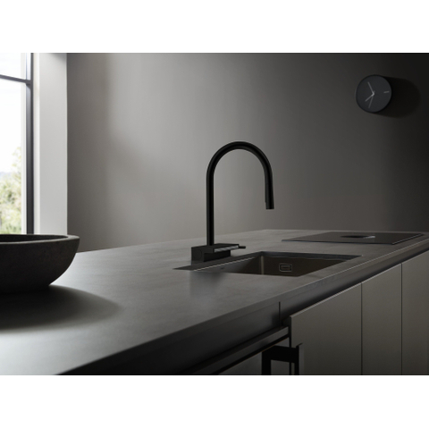 Met zijn matte zwarte afwerking is deze kraan een echte blikvanger in je keuken. Het strakke, moderne design voegt direct een vleugje elegantie toe, zonder te overheersen. De hoge, gebogen uitloop springt in het oog en biedt tegelijkertijd praktische voordelen: je hebt meer ruimte om grote pannen en schalen te vullen of schoon te maken. De subtiele details, zoals de naadloze afwerking en het minimalistische bedieningspaneel, maken het geheel af. Zo geniet je niet alleen van een functionele kraan, maar ook van een stijlvol element dat jouw keuken een upgrade geeft.