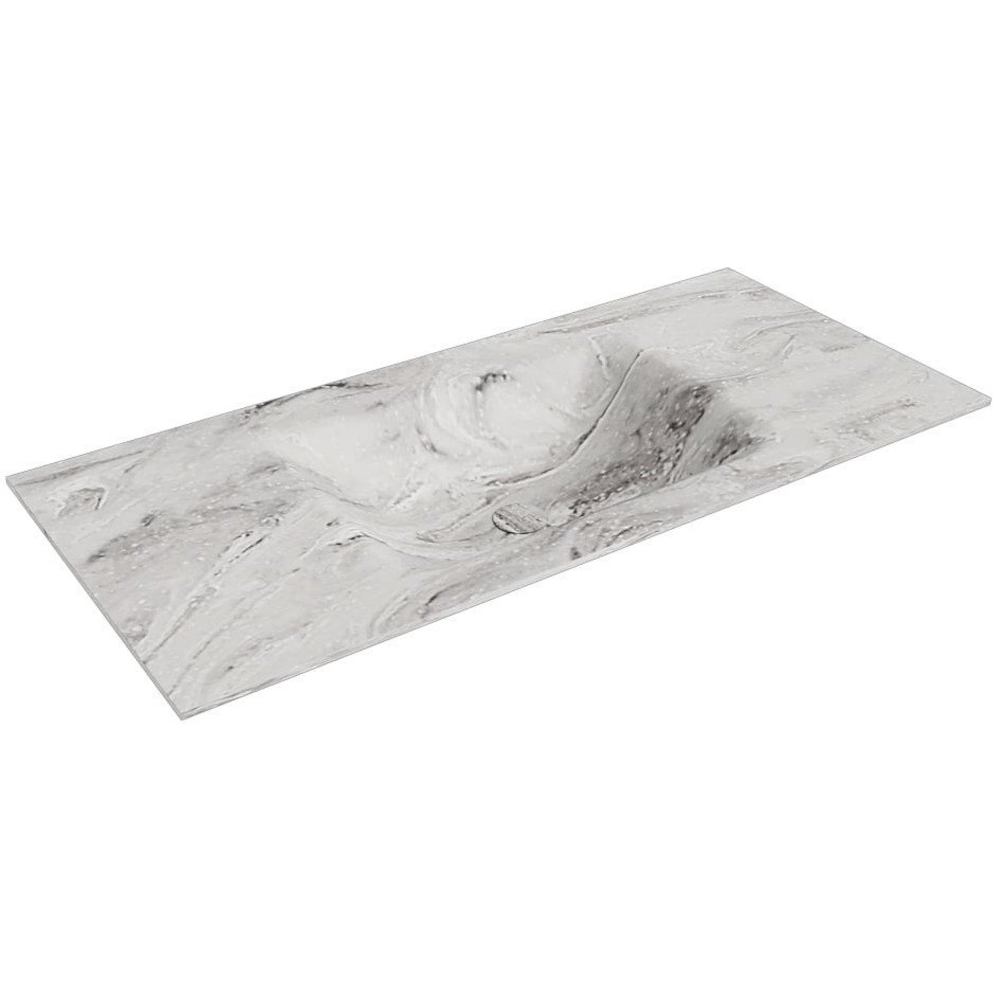 Mondiaz Grunne inbouwwastafel - 100x46x1.2cm - 0 kraangaten - 1 wasbak Cloud Midden - Solid surface Glace (marmer)