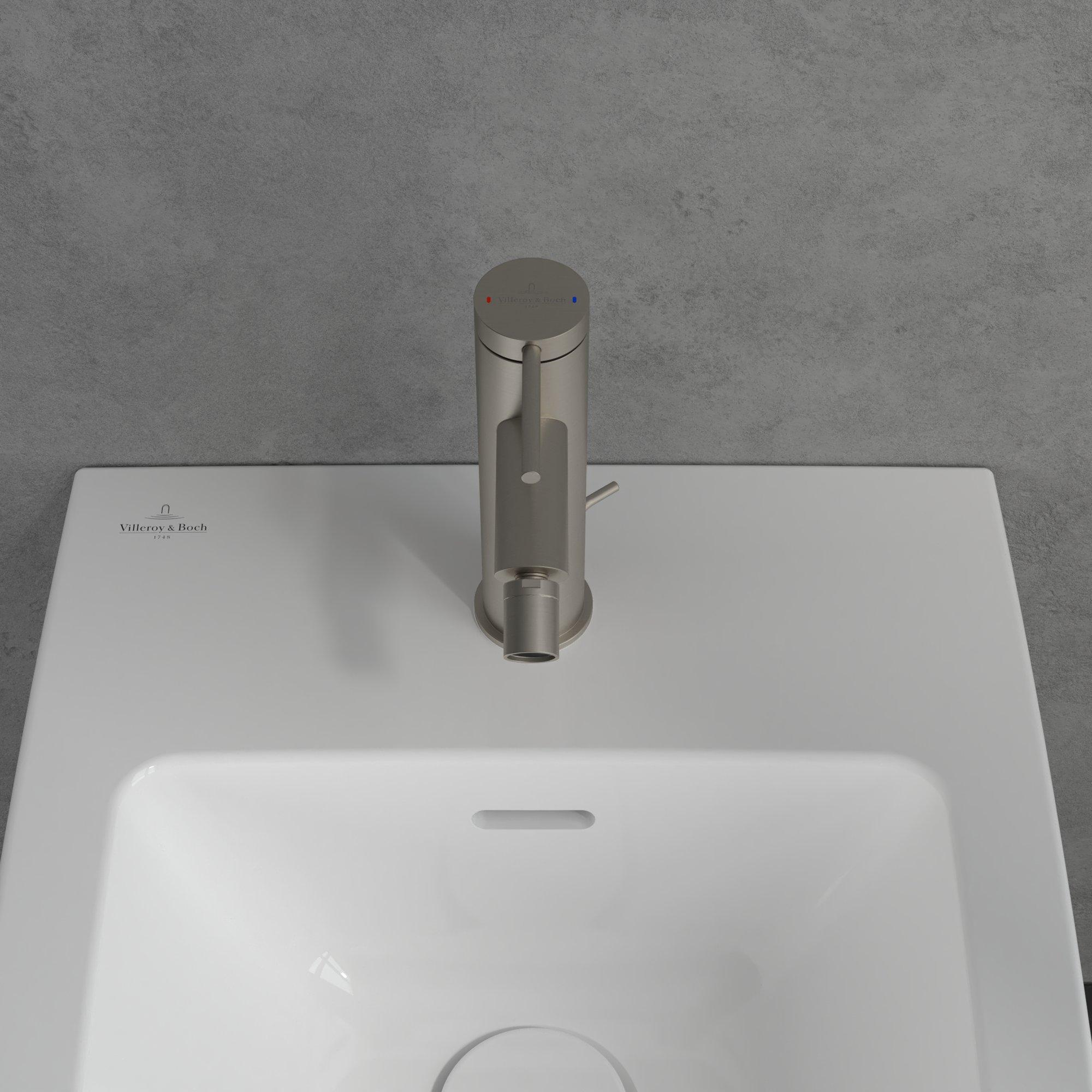 Villeroy & Boch Loop & Friends Eengreeps wastafelkraan - Matt Brushed Nickel (RVS)