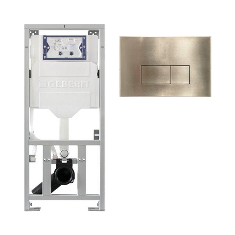 Geberit Inbouwreservoir UP320 met QeramiQ metal bedieningsplaat - dualflush - rechthoekige knoppen - metaal goud geborsteld