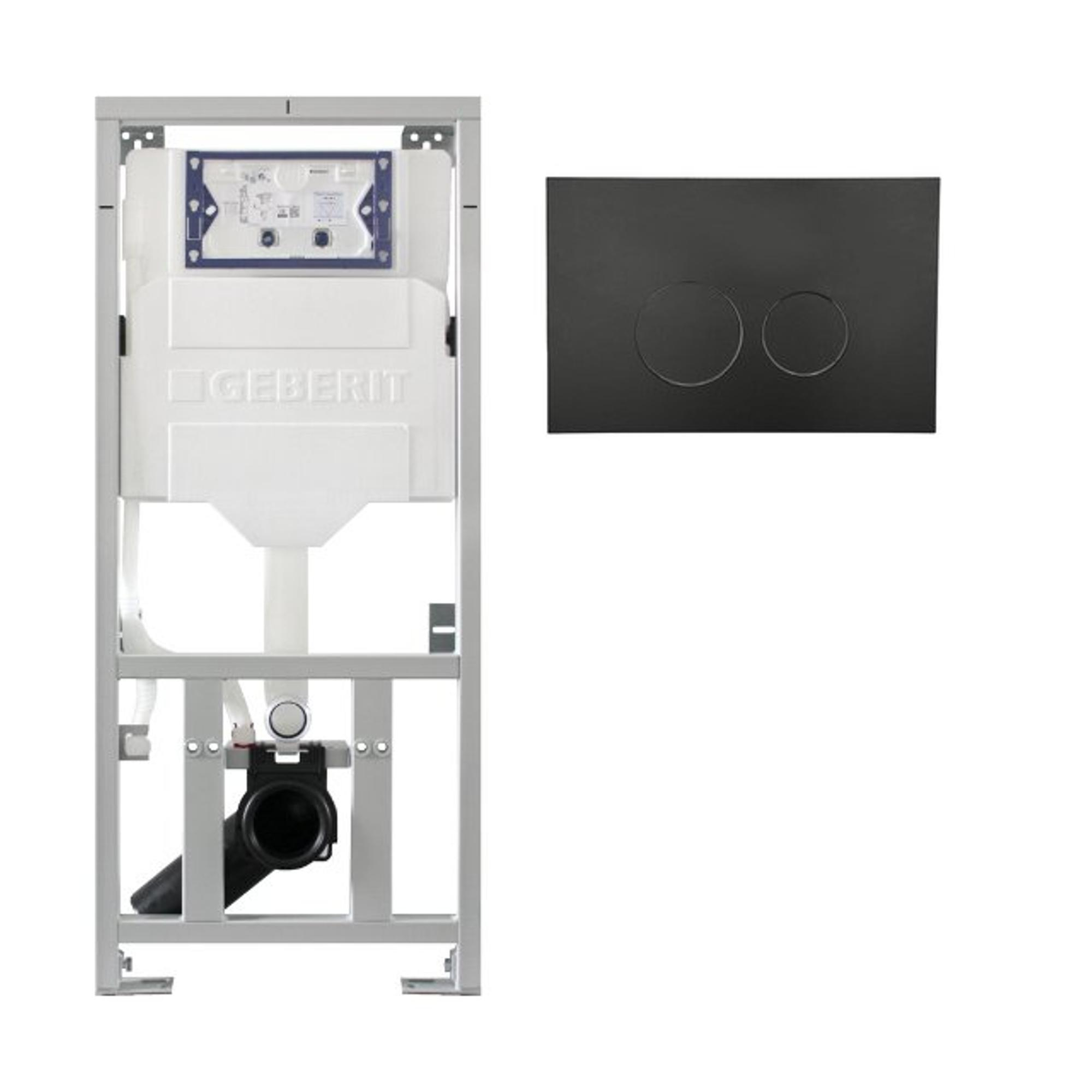 Geberit Inbouwreservoir UP320 met QeramiQ push bedieningsplaat - dualflush - ronde knoppen - kunststof zwart mat