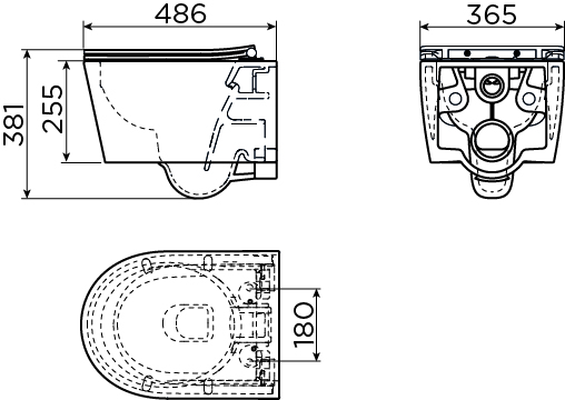 Clou InBe 1 wandtoilet met toiletzitting versie 48 cm mat wit