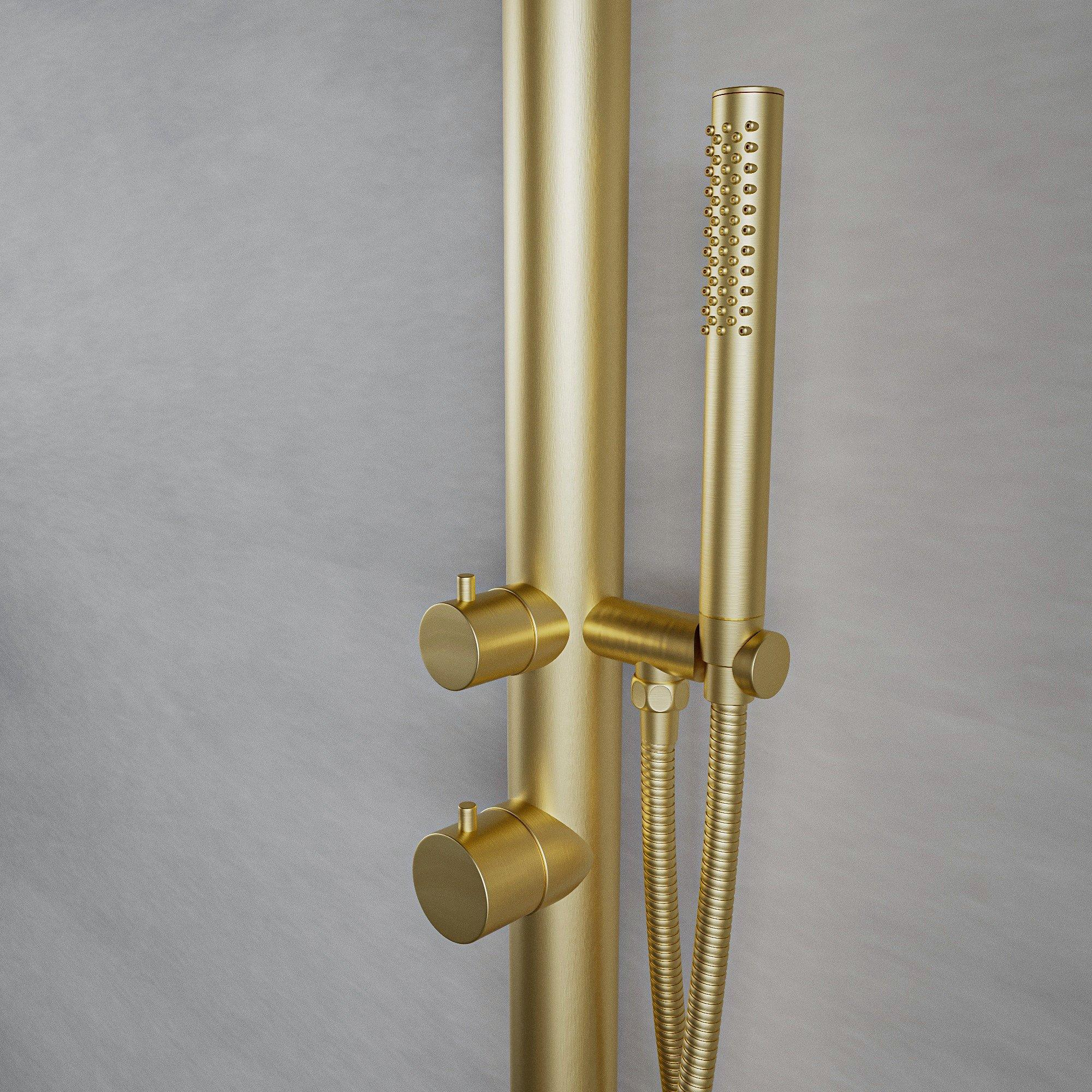 Fortifura Outdoor Original Buitendouche - RVS 316 - handdouche - wandmodel - geborsteld messing