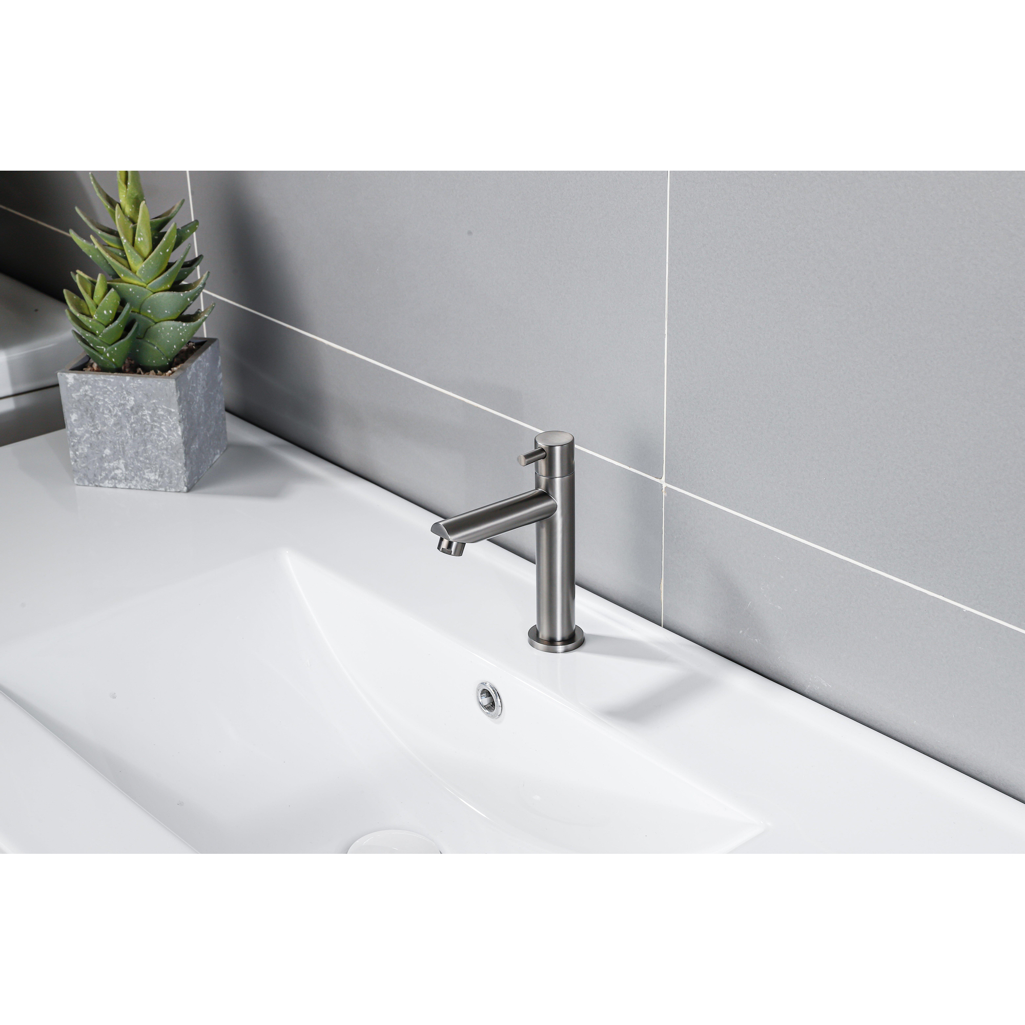 De FugaFlow Sobrado Fonteinkraan straalt elegantie uit in elke badkamer. Het slanke ontwerp en de gunmetal afwerking zorgen voor een tijdloze en chique uitstraling. De kraan past perfect bij zowel moderne als klassieke interieurstijlen en voegt een vleugje luxe toe aan de ruimte. Met zijn opvallende design is de fonteinkraan een ware blikvanger die de badkamer naar een hoger niveau tilt.
