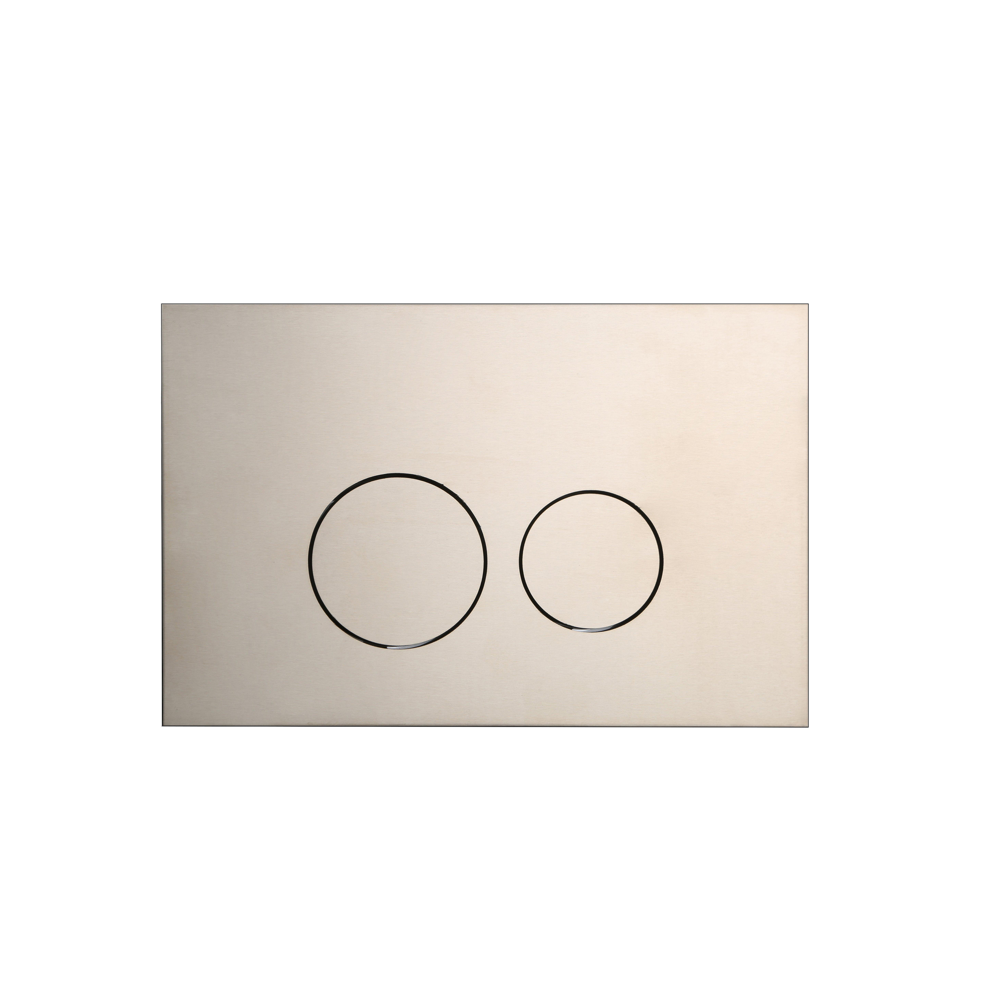De FugaFlow Metal Bedieningsplaat straalt een moderne en eigentijdse uitstraling uit die perfect past bij hedendaagse badkamerstijlen. De strakke lijnen en de matte afwerking zorgen voor een minimalistische look die elke badkamer een verfijnde touch geeft. De ronde knoppen voegen een speels element toe aan het geheel, terwijl het dualflush-systeem laat zien dat functionaliteit en design hand in hand kunnen gaan.