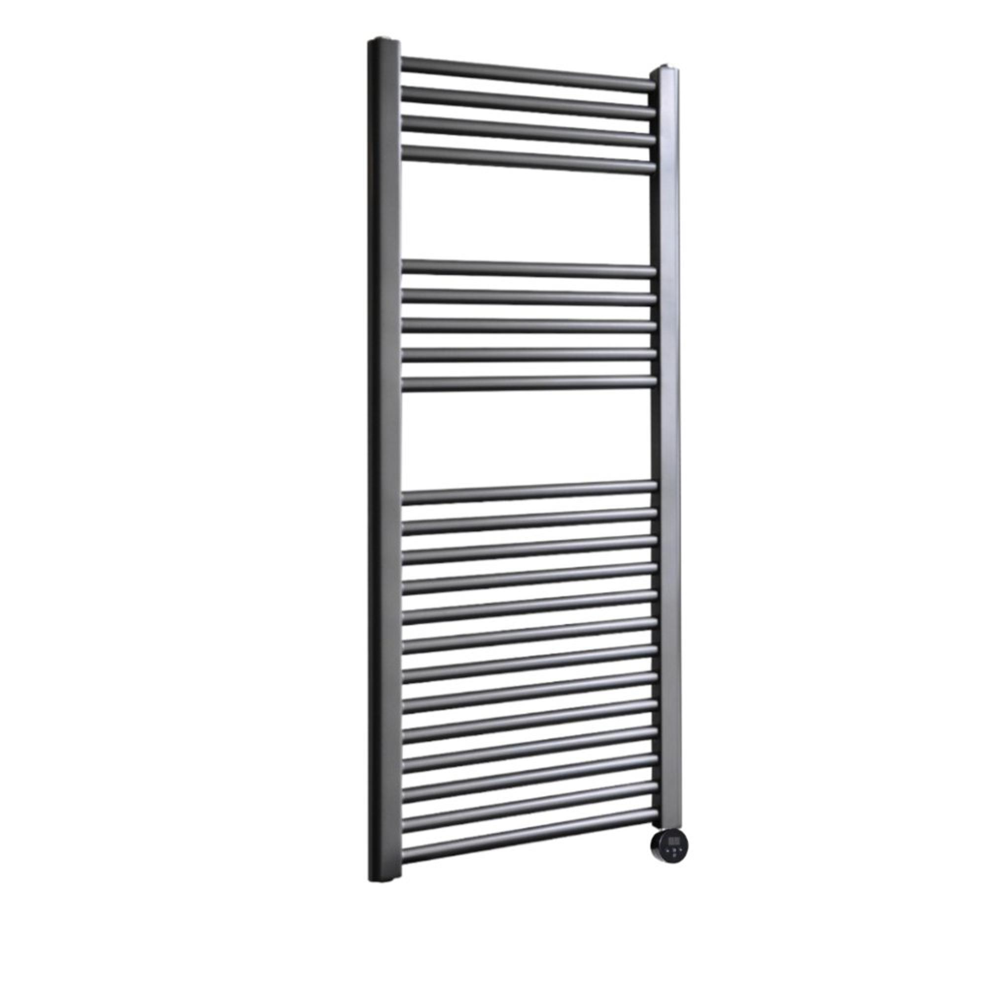 Sanicare Elektrische Radiator - 111.8x45cm - 596W - design - thermostaat - zwart - rechtsonder - gunmetal (antraciet)