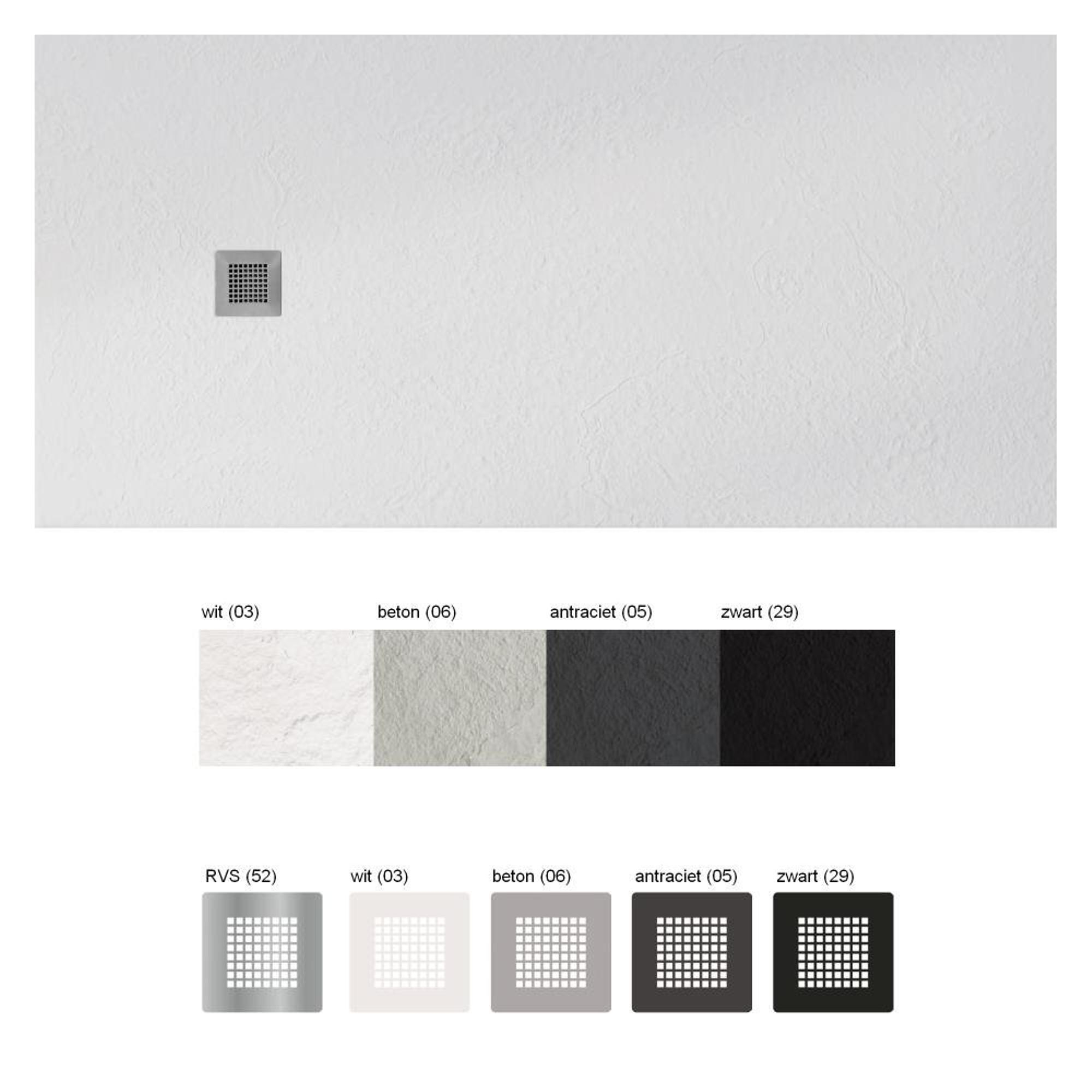 Xenz Soft douchevloer - 90x90x3 - vierkante afvoer rvs - antraciet