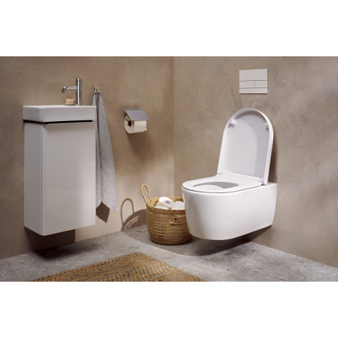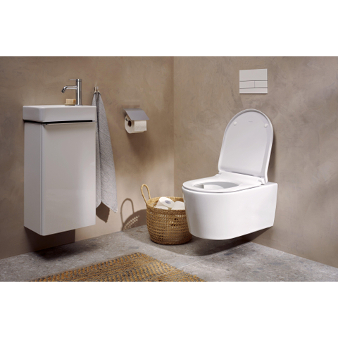 Het gladde keramiek met SmartClean-oppervlak zorgt ervoor dat waterdruppels en vuil zich minder snel hechten. Dat merk je direct bij het schoonmaken: een zachte doek en mild schoonmaakmiddel zijn meestal al genoeg om de wastafel weer te laten glanzen. Kalkafzetting ontstaat minder snel en zeepresten spoel je eenvoudig weg. Omdat er geen overloop is, heb je bovendien minder randjes en hoekjes waar vuil zich kan ophopen, wat de hygiëne ten goede komt. Dit maakt deze wastafel bijzonder geschikt voor drukbezochte toiletten, gezinnen met kinderen of iedereen die graag een frisse, hygiënische ruimte wil zonder daar veel tijd aan onderhoud kwijt te zijn.
