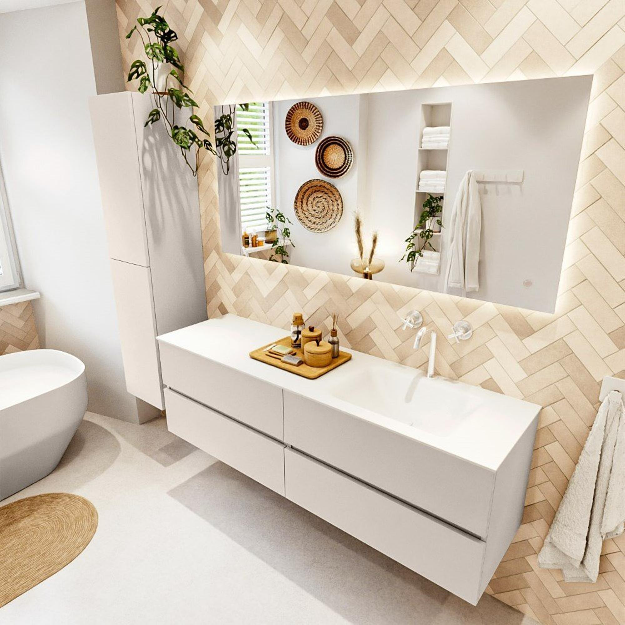 Mondiaz VICA 160cm badmeubel onderkast Linen 4 lades. Wastafel CLOUD rechts 1 kraangat, kleur Talc met spiegel LED