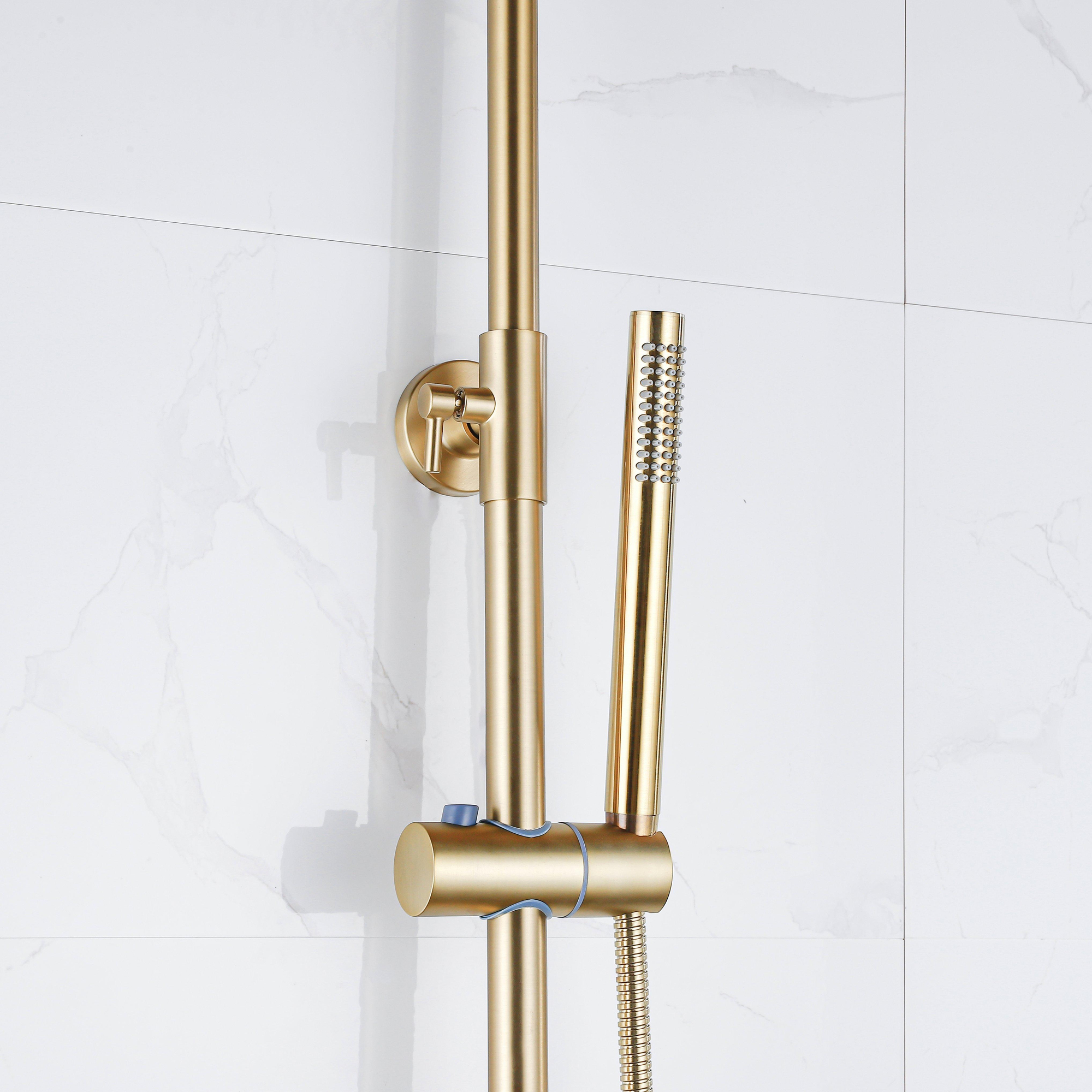 Fortifura Calvi Thermostatische Regendoucheset - 25cm - ronde hoofddouche - staafhanddouche - geborsteld messing PVD TWEEDEKANS