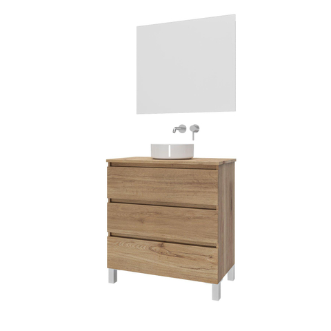 Saniclass Chaci PLUS Badkamermeubelset - 80x86x46cm - waskom - topblad - 3 lades - rechthoekige spiegel - eiken