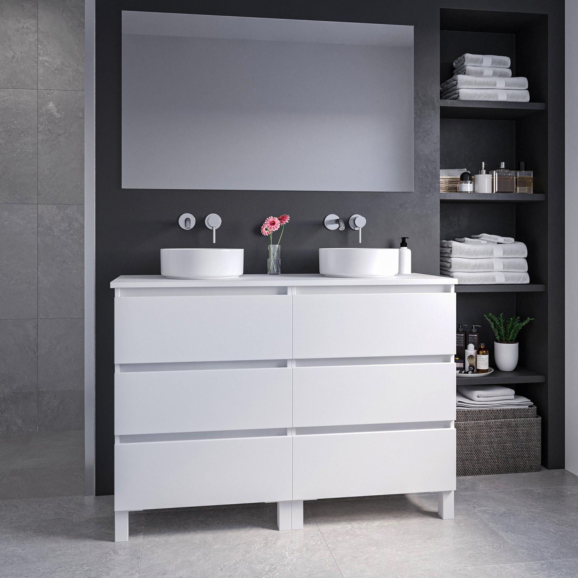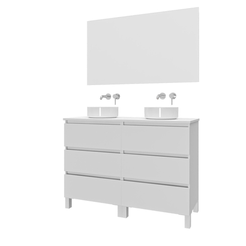 Saniclass Chaci PLUS Badkamermeubelset - 120x86x46cm - waskom - topblad - 6 lades - rechthoekige spiegel - mat wit