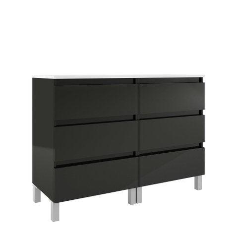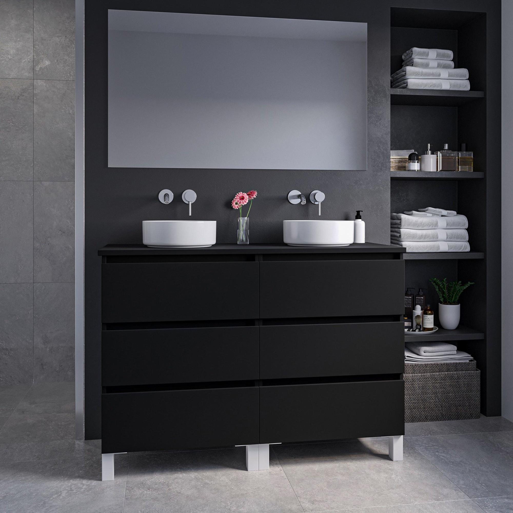 Saniclass Chaci PLUS Badkamermeubelset - 120x86x46cm - waskom - topblad - 6 lades - mat zwart