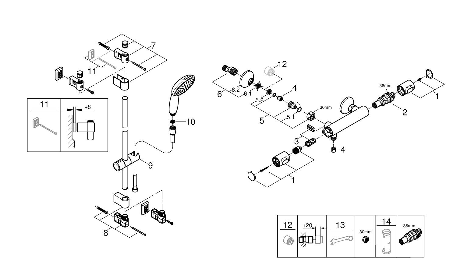 De set is ontworpen met het oog op optimaal gebruiksgemak. Dankzij de GROHE SafeStop knop is de maximale temperatuur op 38°C ingesteld, wat extra veiligheid biedt voor het hele gezin. De glijstang is eenvoudig in hoogte en hoek verstelbaar, zodat je de douche precies kunt afstemmen op jouw wensen. De installatie is verrassend eenvoudig dankzij het QuickFix-principe en de meegeleverde QuickSpanner, waardoor je zonder gereedschap aan de slag kunt. Zo geniet je snel en probleemloos van een comfortabele douche-ervaring.