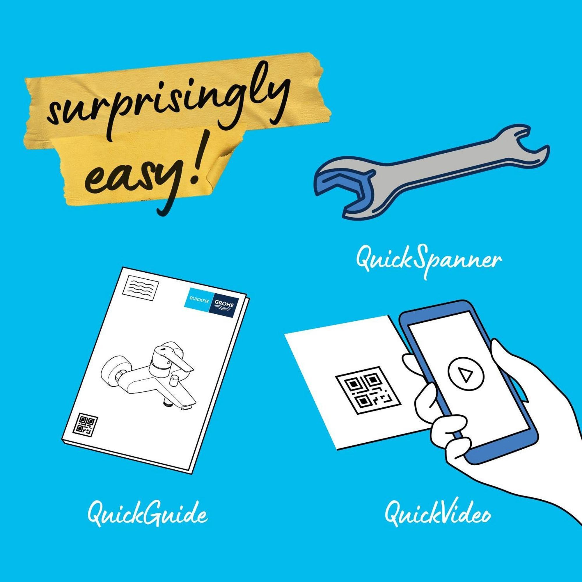 - Inclusief S-koppelingen en GROHE QuickSpanner voor snelle en eenvoudige montage