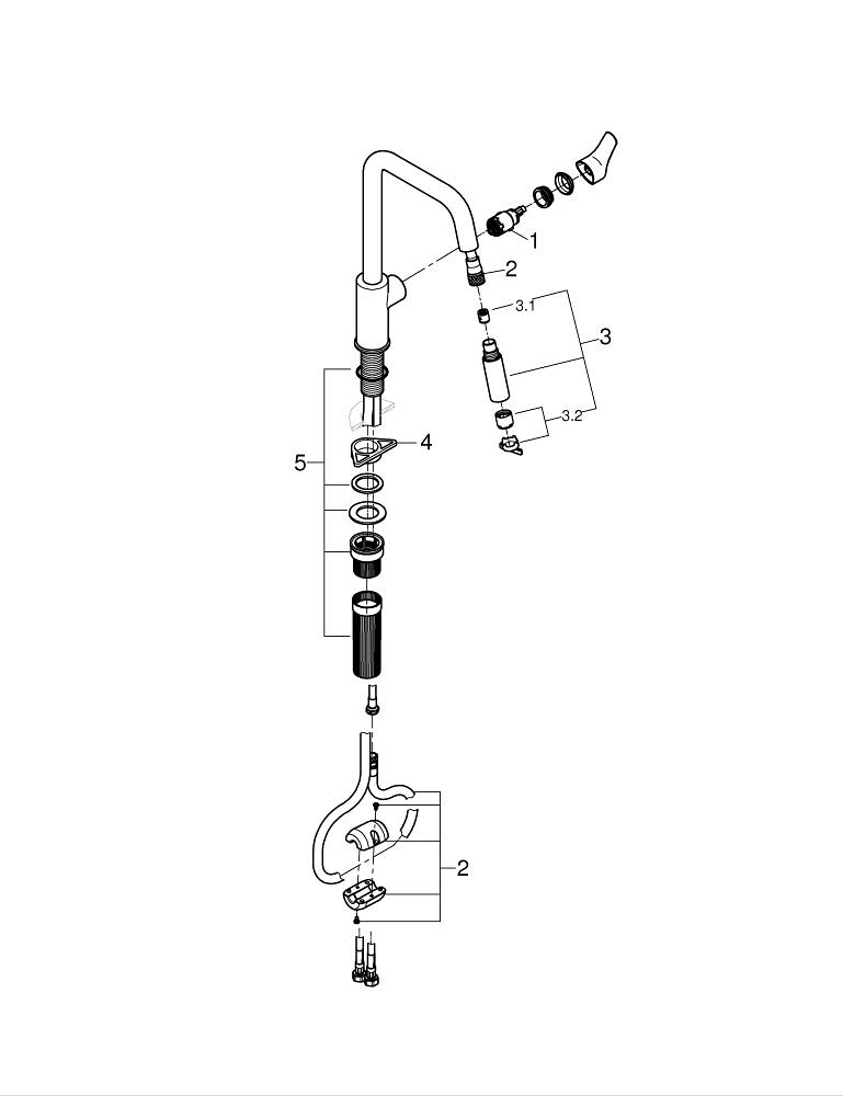 - Gescheiden interne waterwegen (GROHE Zero) voor zuiver en veilig drinkwater