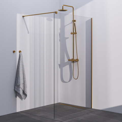 De goud geborstelde afwerking van de BRAUER Season Inloopdouche straalt luxe en elegantie uit. Het is een statement piece dat je badkamer naar een hoger niveau tilt. Geniet van een spa-achtige ervaring in je eigen huis met deze prachtige inloopdouche.
