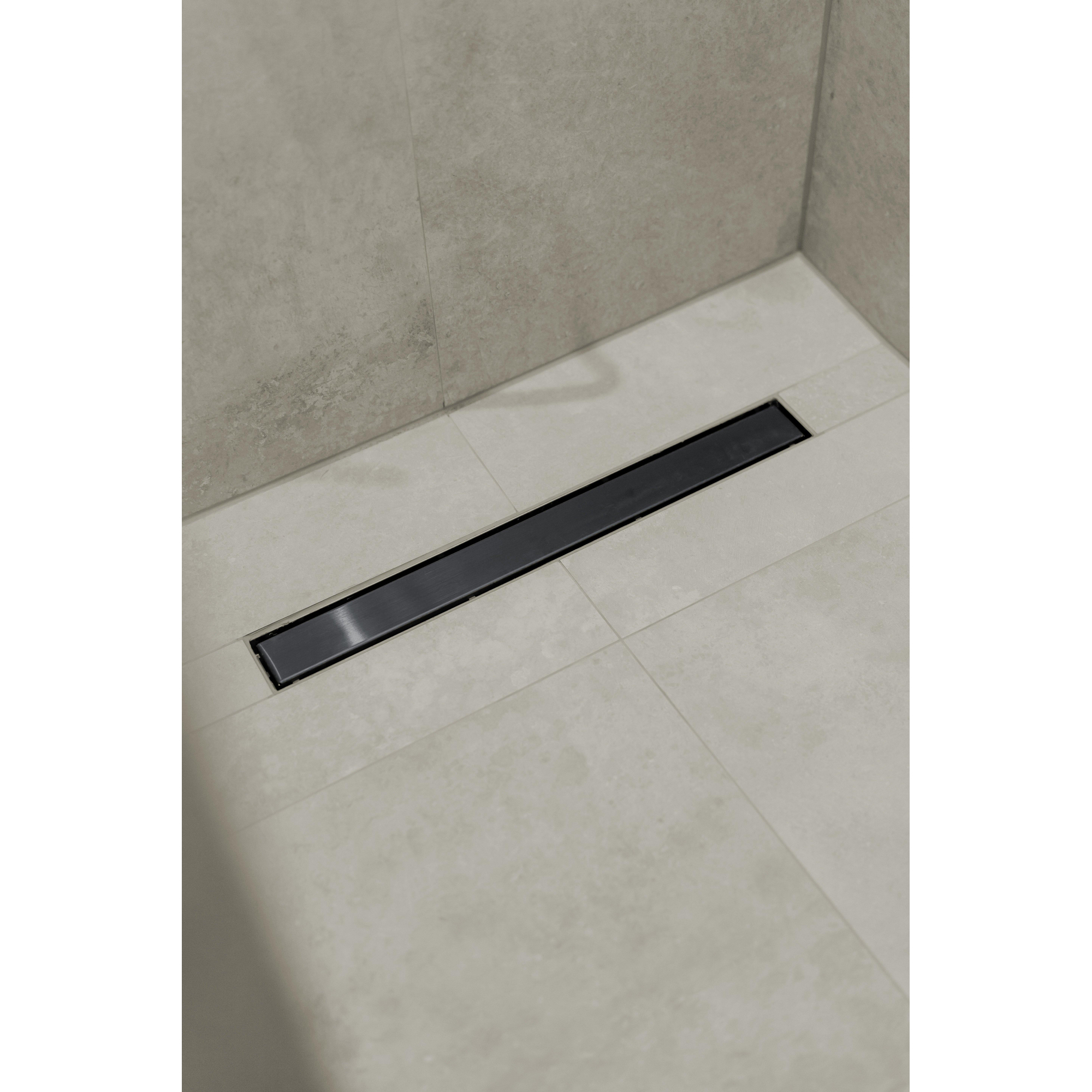 De Fortifura Galeria douchegoot straalt stijl en elegantie uit dankzij zijn slanke ontwerp en gunmetal afwerking. Het gesloten rooster zorgt voor een strakke uitstraling en voorkomt dat vuil en haren in de goot terechtkomen. Hierdoor blijft je douche niet alleen mooi, maar ook gemakkelijk schoon te houden. De vloerflens zorgt voor een naadloze integratie met de vloer, waardoor de goot een harmonieus geheel vormt met de rest van de badkamer.