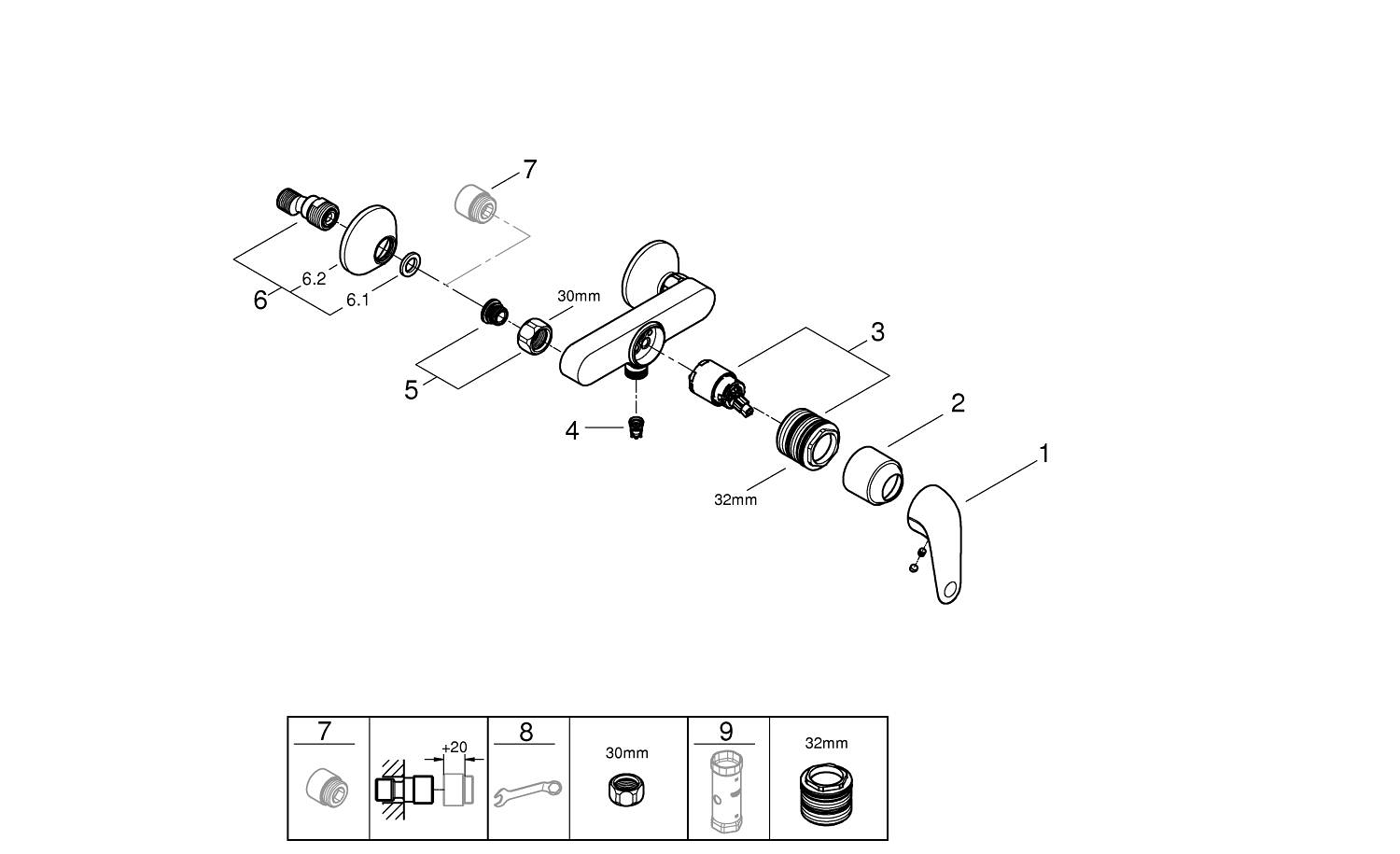 GROHE Euroeco Douchemengkraan - met hendel - met s-koppelingen - chroom