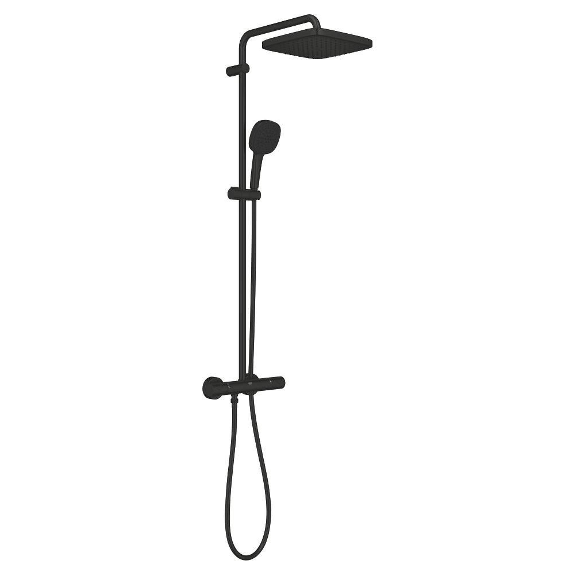 Stel je voor: een badkamer waar stijl en functionaliteit moeiteloos samenkomen. Met dit douchesysteem geef je jouw dagelijkse douchebeurt een luxe upgrade. De strakke, matte zwarte afwerking voegt een moderne en elegante touch toe, terwijl je geniet van het comfort van een perfect gereguleerde watertemperatuur. Dankzij het slimme ontwerp met een royale hoofddouche en een veelzijdige handdouche ervaar je steeds weer een verfrissende en ontspannende douche. De combinatie van zachte regenstralen en krachtige jets zorgt ervoor dat je jouw douche precies kunt afstemmen op jouw stemming en behoefte. Bovendien is het systeem eenvoudig te bedienen en onderhoudsvriendelijk, zodat je lang plezier hebt van deze aanwinst in je badkamer. Zo transformeer je jouw badkamer in een persoonlijke wellnessruimte waar je elke dag even helemaal tot rust komt.