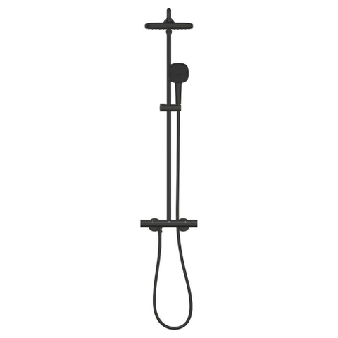GROHE Tempesta 250 Cube Regendoucheset - hoofddouche 25cm - vierkante handdouche - 2 straalsoorten - met thermostaatkraan - matte black (zwart)