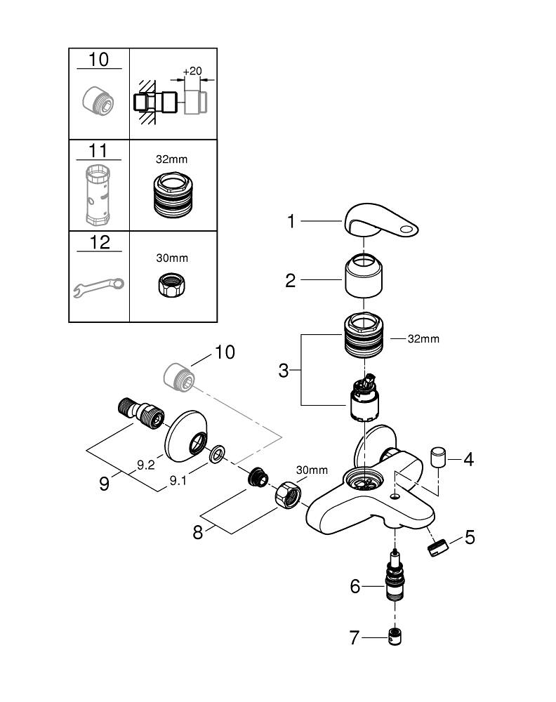 GROHE Euroeco Badmengkraan - opbouw - eengreeps - met omstel - chroom